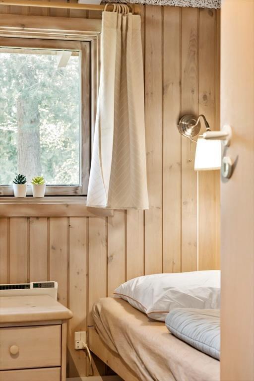Fra stuen er der ligeledes adgang til husets 3 soverum, som i alt byder på 6 sovepladser samt god skabsplads i 2 af soveværelserne.