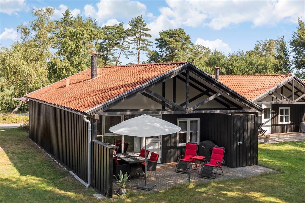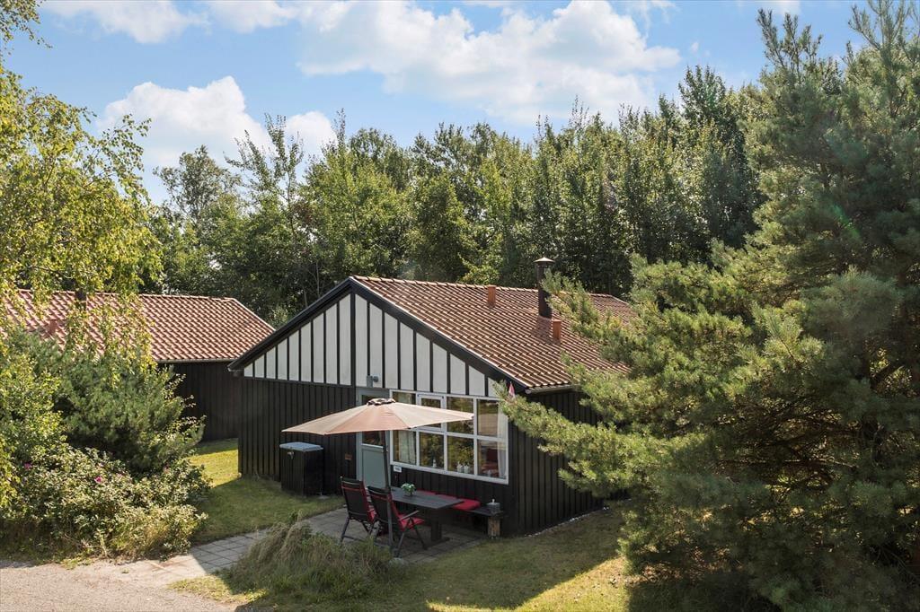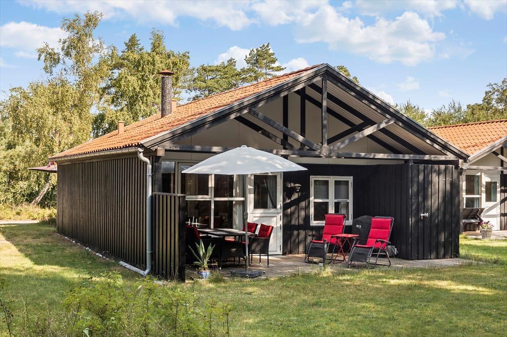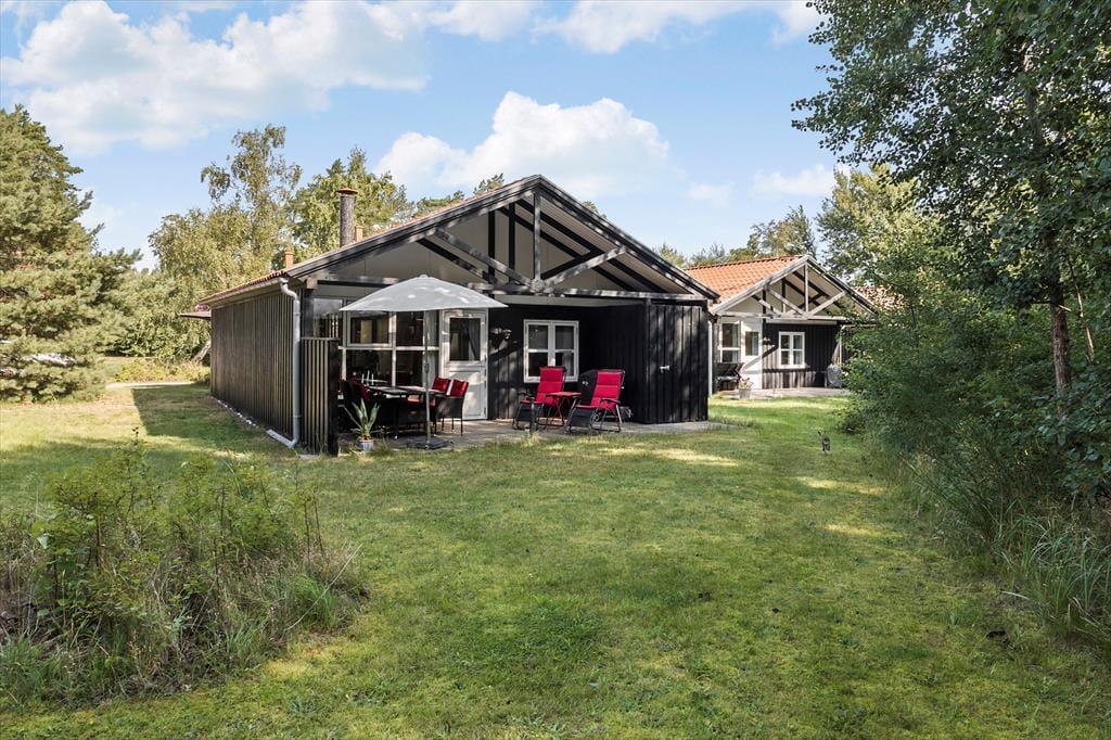 Fritidshuset er beliggende i et roligt og børnevenligt område med ens huse, hvor man vil opleve en hyggelig og afslappet atmosfære og et hyggeligt fællesskab, hvor der altid er legekammerater på legepladsen til ens børn, samt en ugeneret sti til stranden.