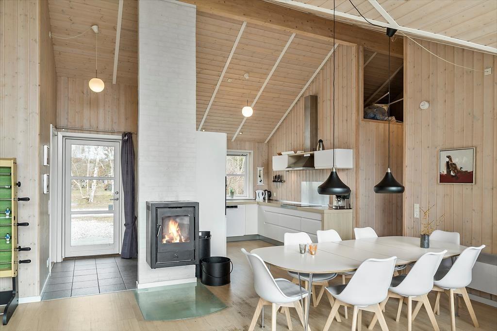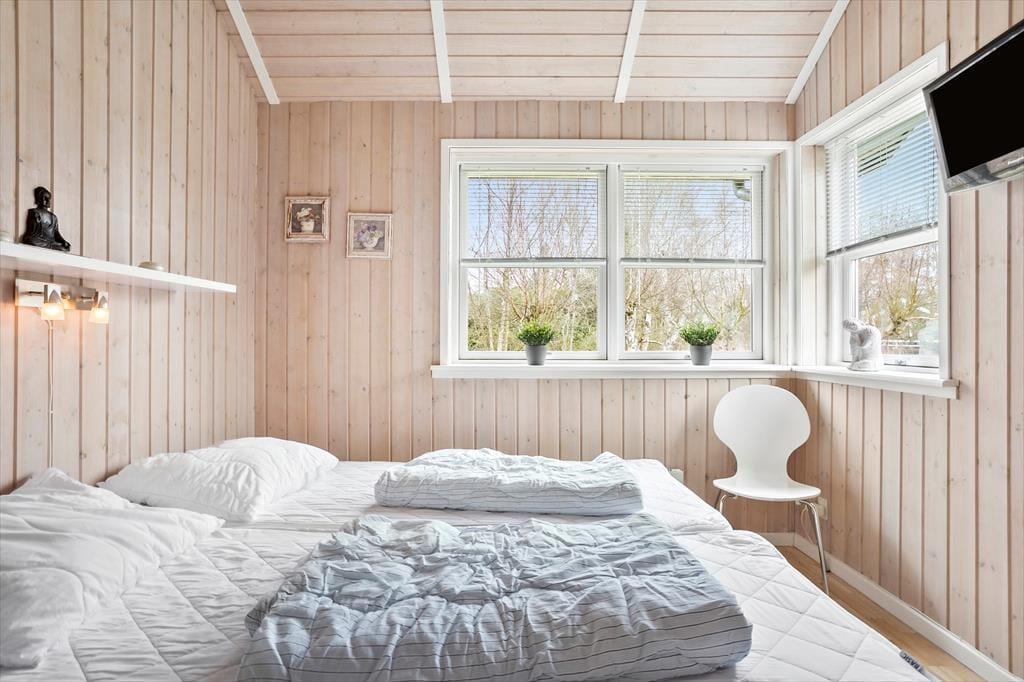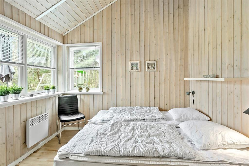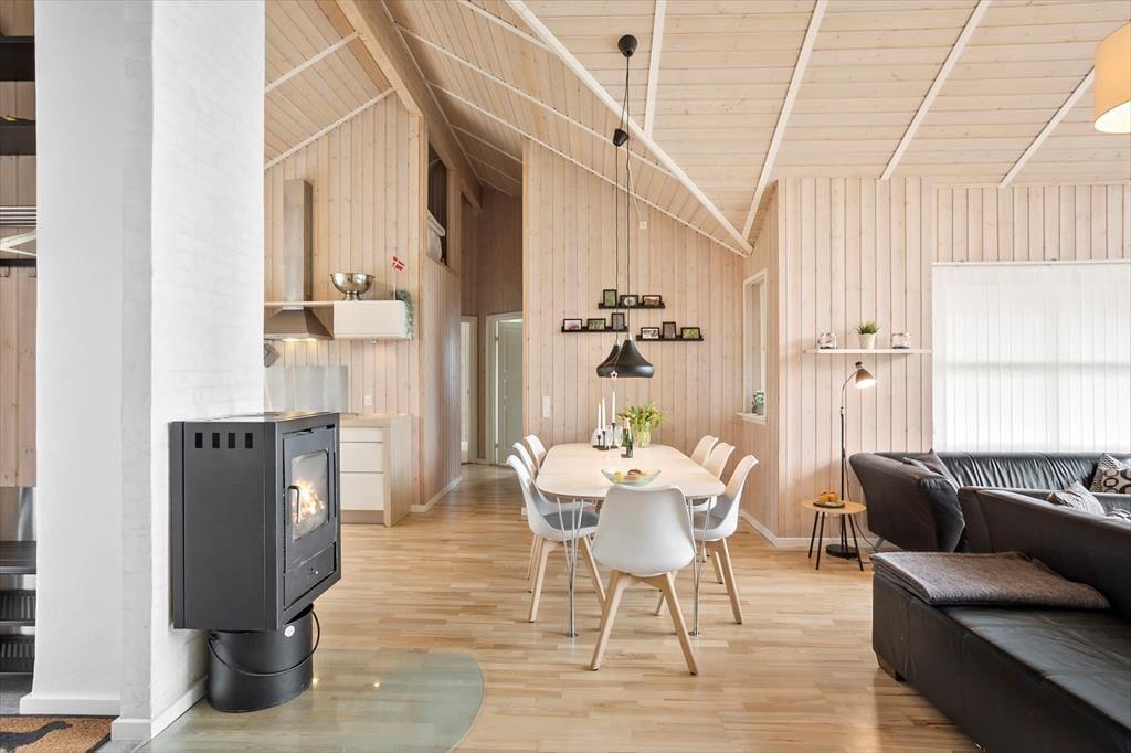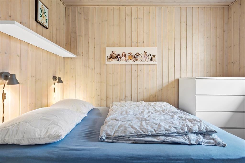 Fritidshuset indeholder: Entre, gæstetoilet, 4 rigtig gode soveværelser, badeværelse med wc, bruser, spa og sauna, køkken-alrum med spiseafdelingen tæt på, stue med sofaområde og udgang til terrassen.