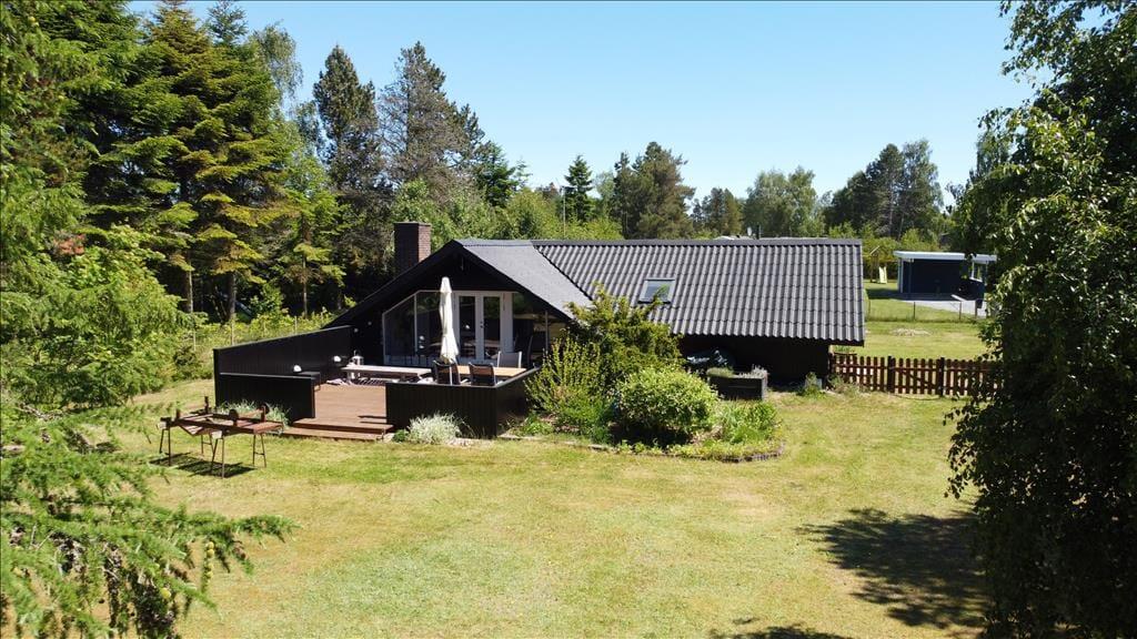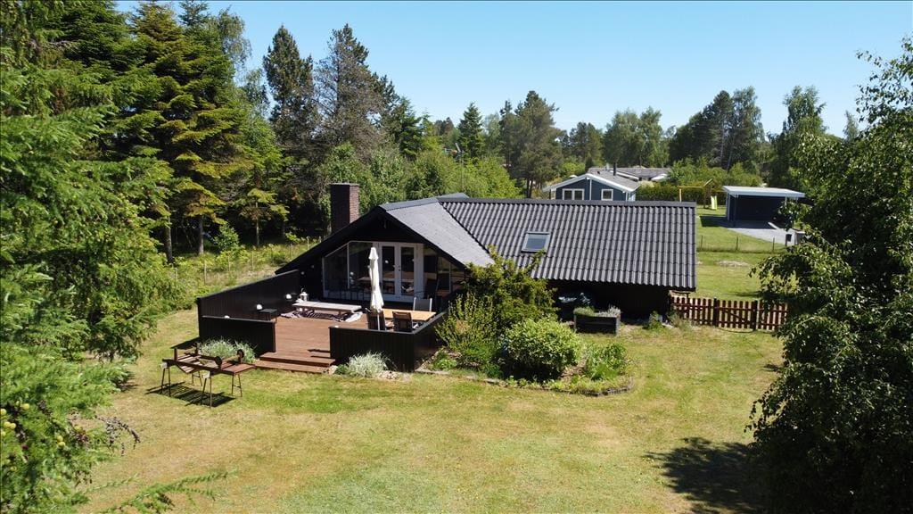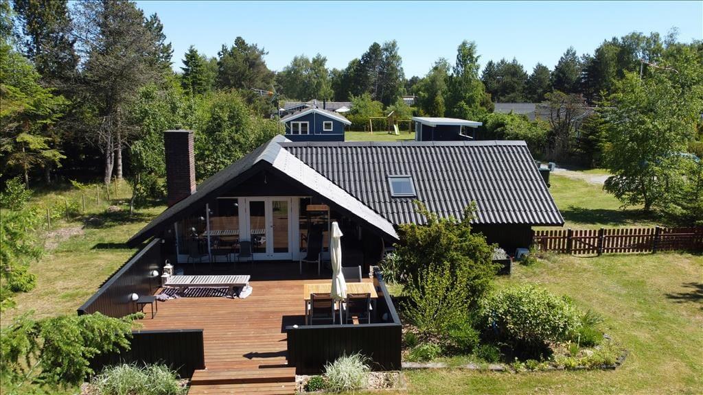 Fritidshuset er beliggende på en 1046 kvm stor og solrig grund for enden af en lukket stikvej. Der er god plads i haven til udendørsaktiviteter, samt hyggeligt stunder på den skønne træterrasse.