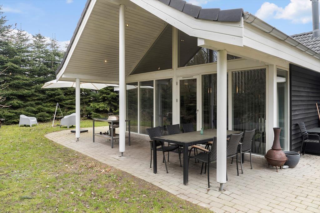 Udendørs finder i en skøn stor terrasse på 80kvm, samt 14 kvm overdækket terrasse med grill og masser af siddepladser til at nyde de dejlige grillaftener. Desuden er der en stor have på en 1100kvm havegrund med sandkasse, gyngestativ, trampolin, petanque og fodboldmål, så her er rig mulighed for at hele familien kan lege.