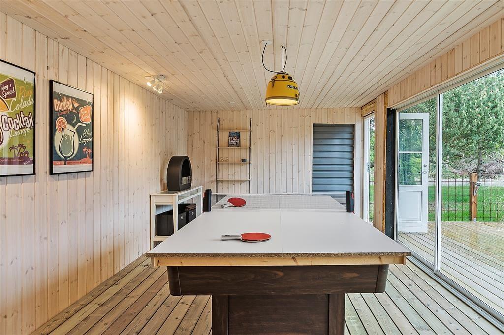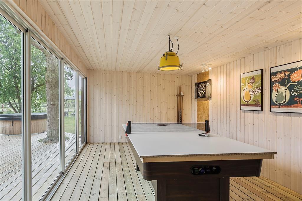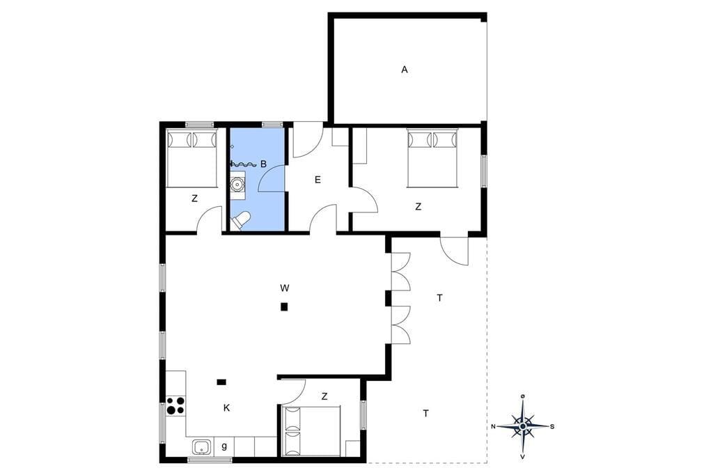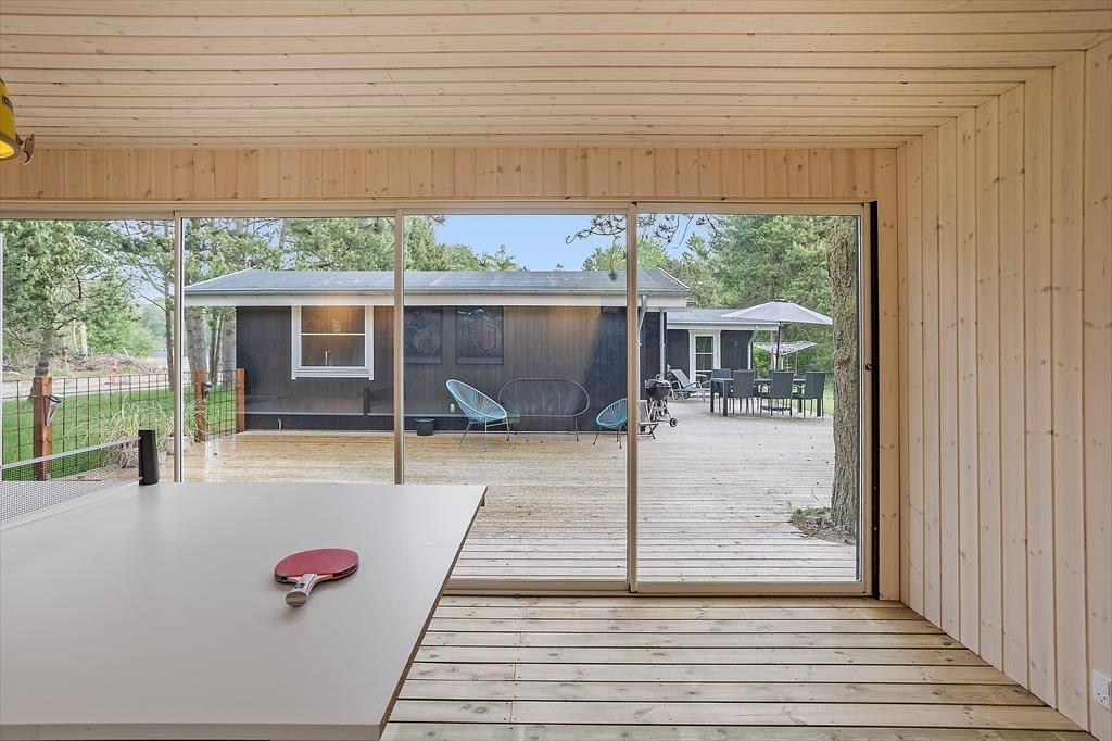 Feriehuset indeholder: Entre, et stort køkken-alrum med spiseplads og sofaområde, 3 gode soveværelser og et rigtig godt badeværelse med WC og bruser. Endvidere byder feriehuset på en skøn terrasse med udgang lige fra køkken-alrum.