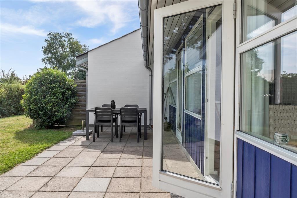 Til lejligheden hører 2 små terrasser, en lille hyggelig privat terrasse på bagsiden af lejligheden, og en lille terrasse foran lejligheden. Havemøbler på begge terrasser.