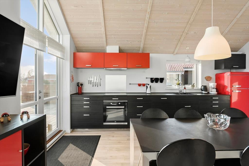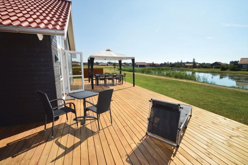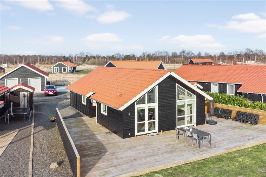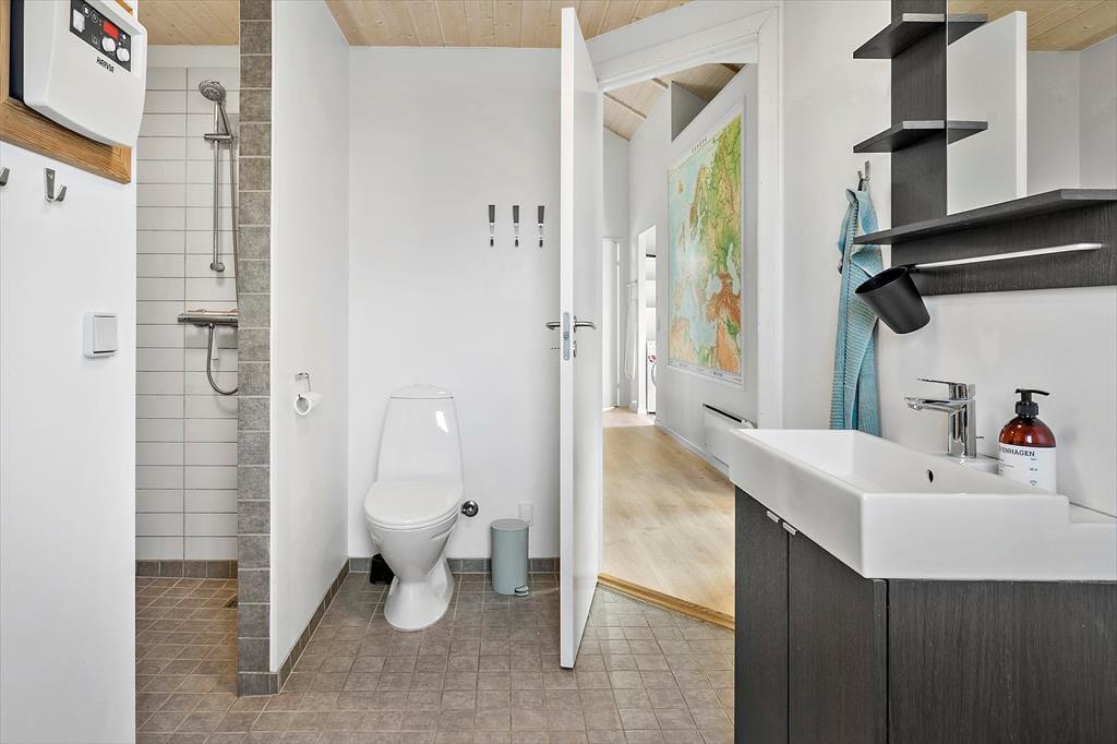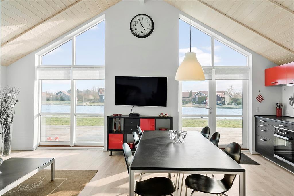 Feriehuset byder på 2 gode soveværelser, en alkove og en hems med 2 madrasser. 2 badeværelser hvor det ene indeholder bruser, WC, badekar, og sauna, samt et gæstetoilet. Derudover husets hjerte, som er det skønne køkken-alrum, som indeholder et åbent køkken, en spiseafdeling nær køkkenet, samt en stue og sofaafdeling i den anden ende. Fra stuen er der ligeledes udgang til terrassen, hvorfra der er udsigt til grønne fællesarealer. Desuden indeholder huset også et aktivitetsrum med billardbord og dart.
