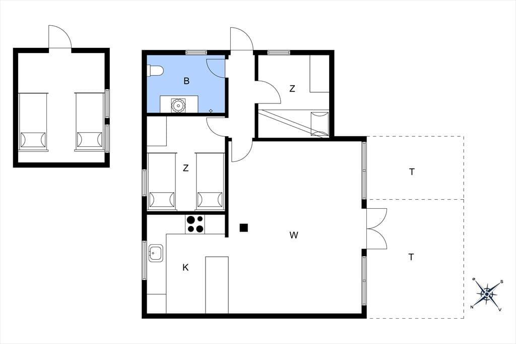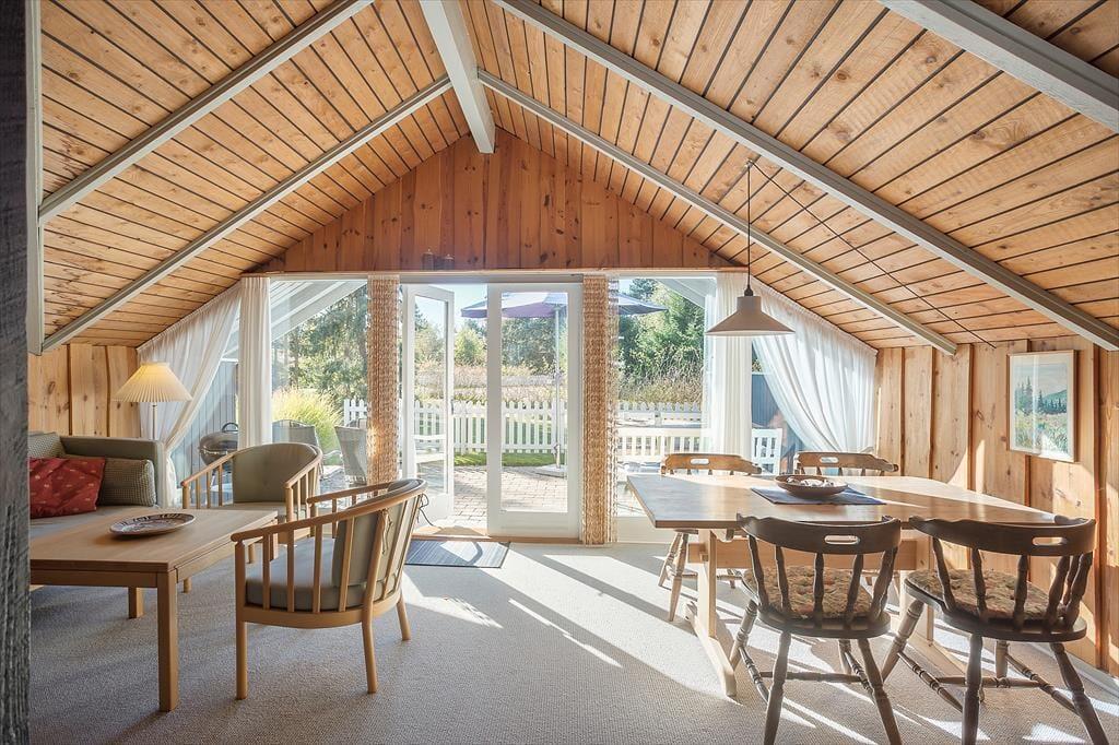 Indrettet med 2 gode soveværelser med henholdsvis køjeseng og to enkeltsenge, et dejligt køkken i åben forbindelse med stuen med direkte udgang til terrassen, samt badeværelse med WC og brusekabine. Det tredje soveværelse er placeret i det tilhørende anneks.