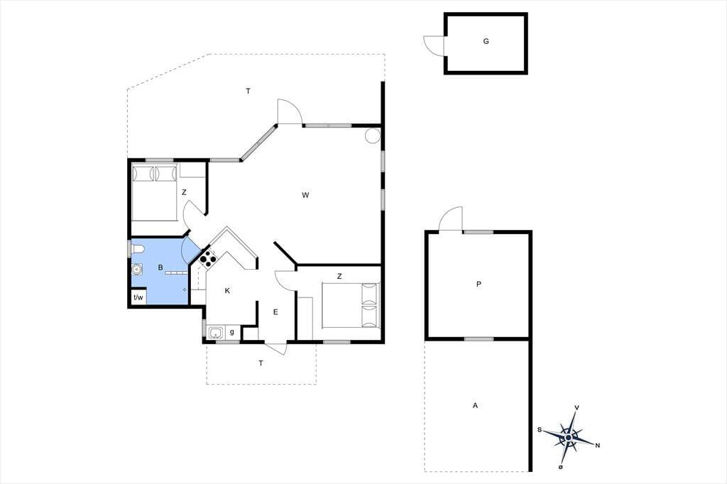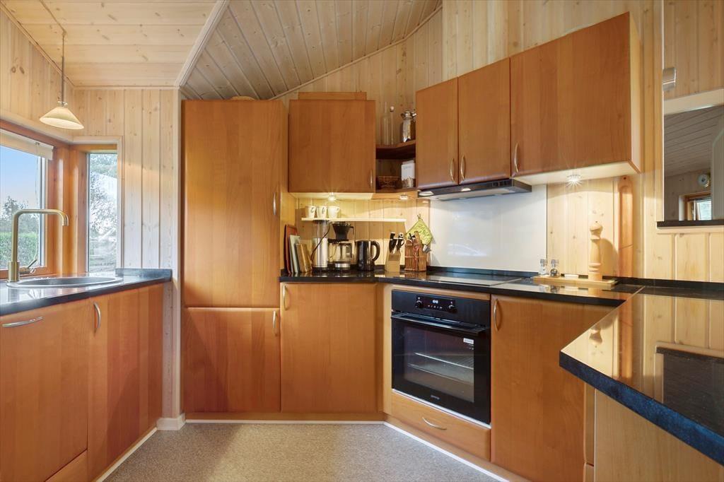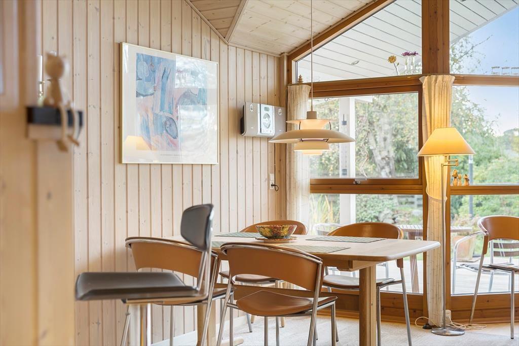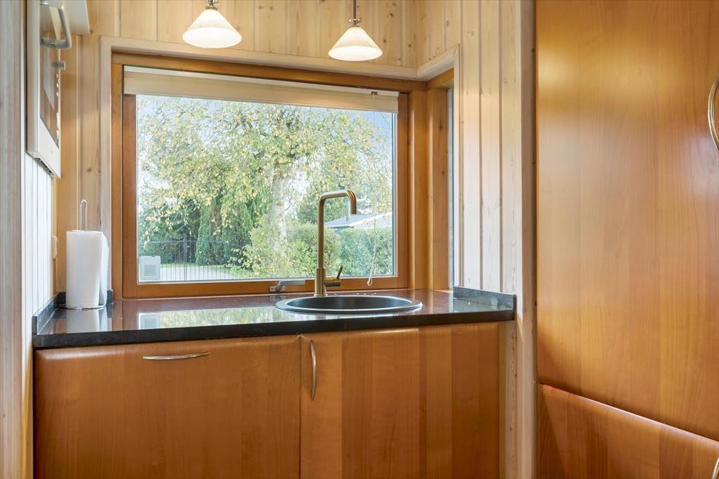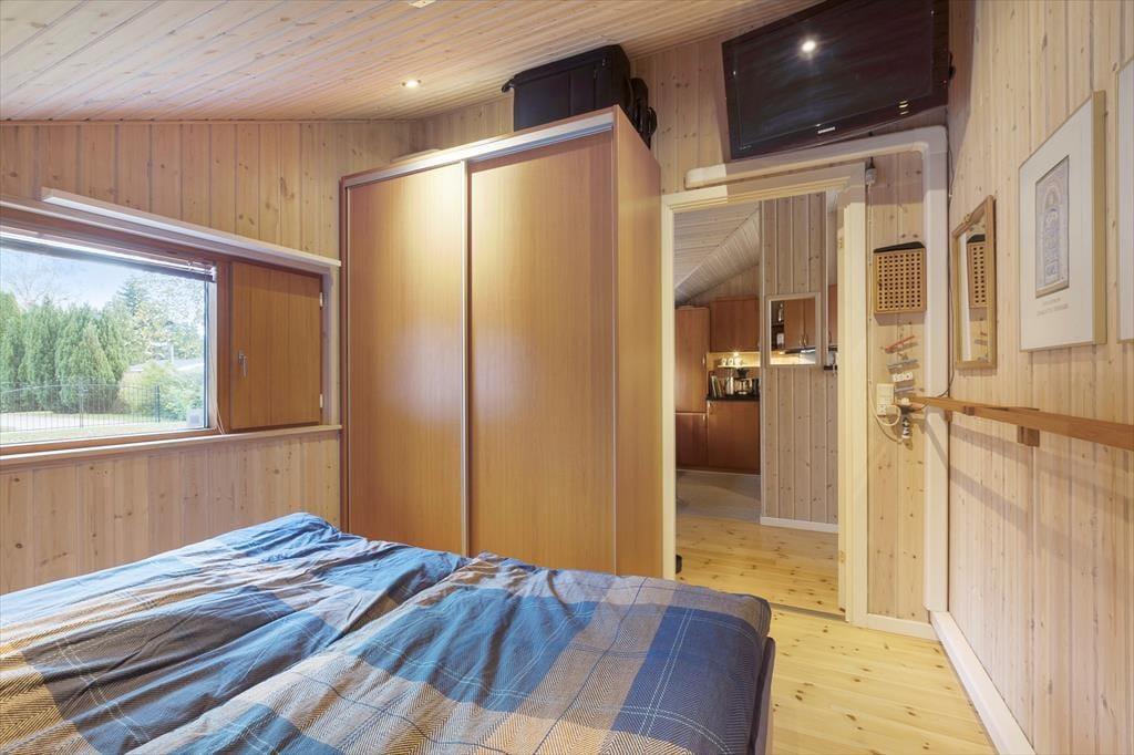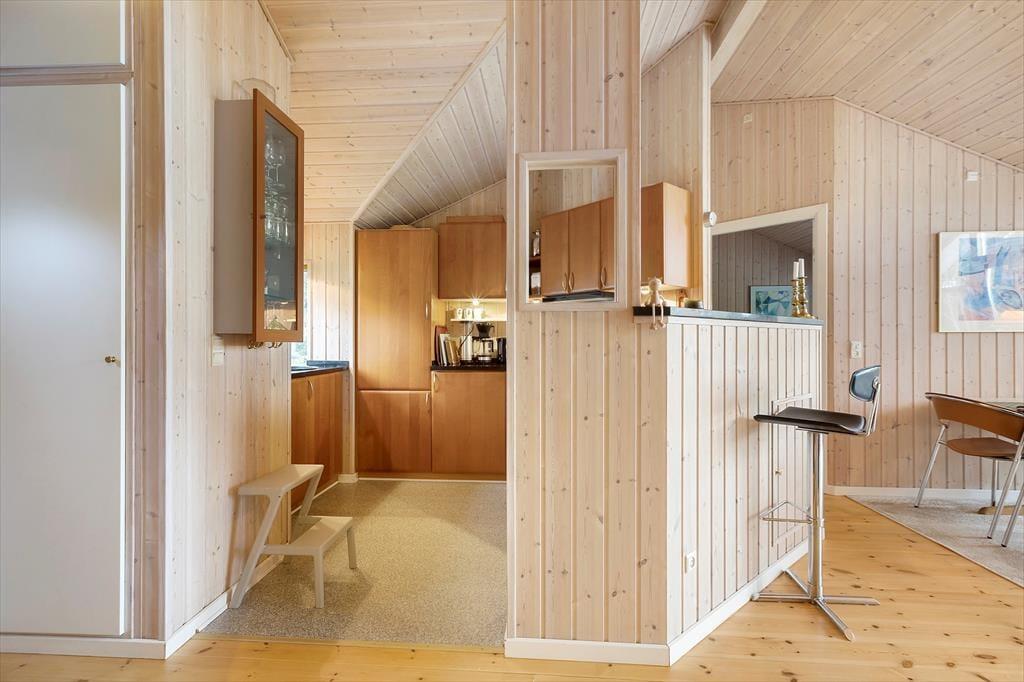 Sommerhuset indeholder: Entré, 2 gode soveværelser, pænt badeværelse med WC og bruseniche samt vaskesøjle, køkken i åben forbindelse til den lyse stue med god brændeovn, fra stuen er der direkte udgang til terrassen og den dejlige have.