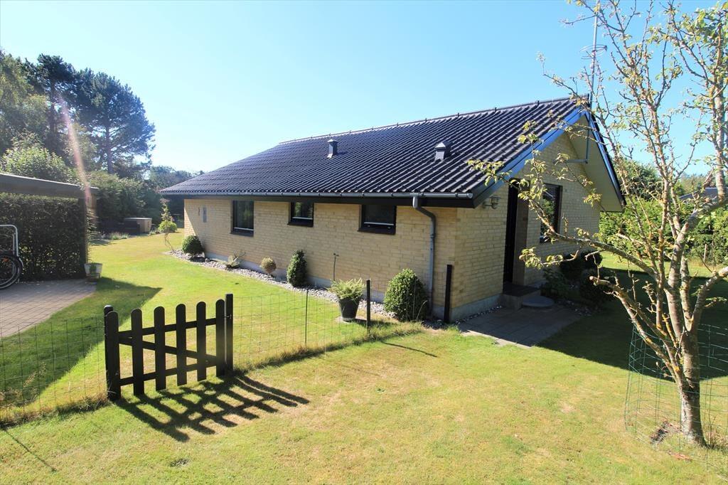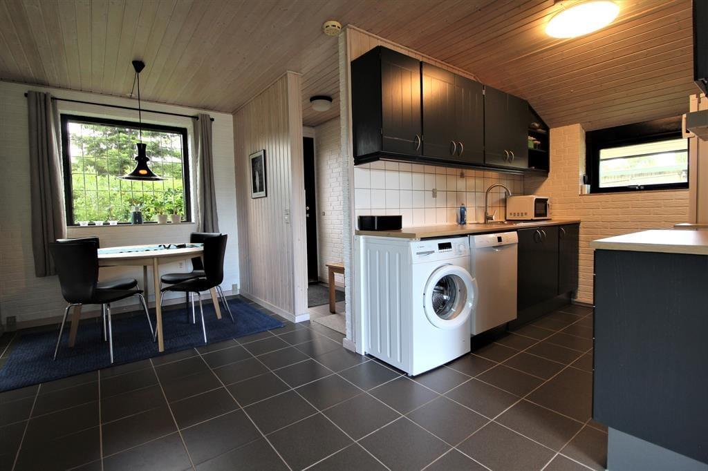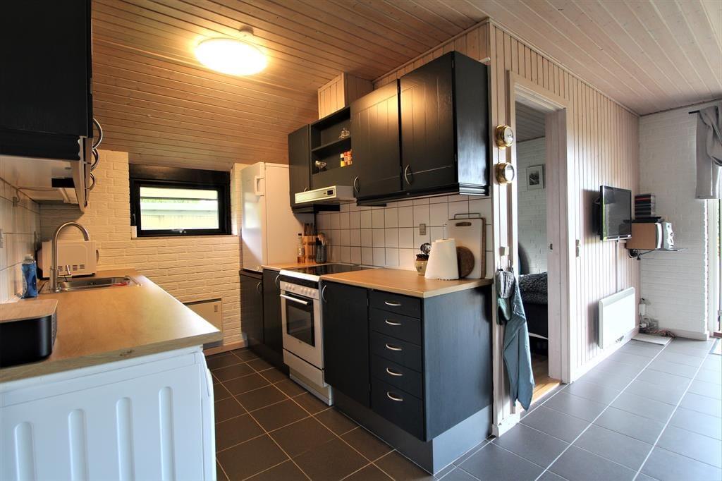 Fritidshuset byder på køkkenalrum med udgang til den overdækkede terrasse. Derudover er der badeværelse med wc og bruser, samt 3 gode soveværelser med henholdsvis to enkeltsenge og en dobbeltseng.