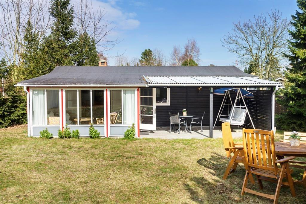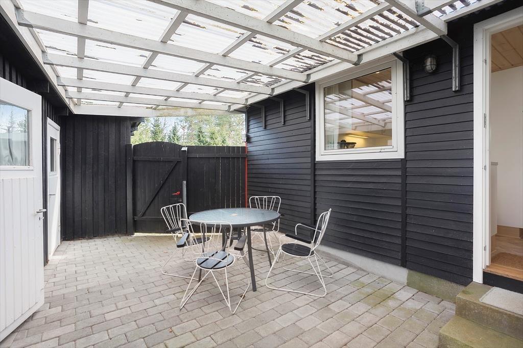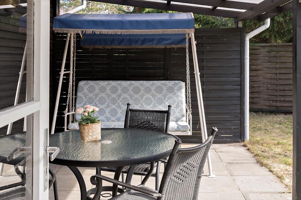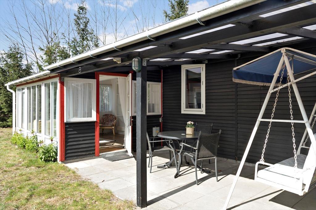 Fritidshuset byder på en velholdt grund med beplantning der giver privatliv samt inviterer til leg for de mindste. Der er desuden også en skøn overdækket terrasse med udendørs spisesæt samt grill, der skaber de perfekte rammer for en hyggelig ferie med familien.