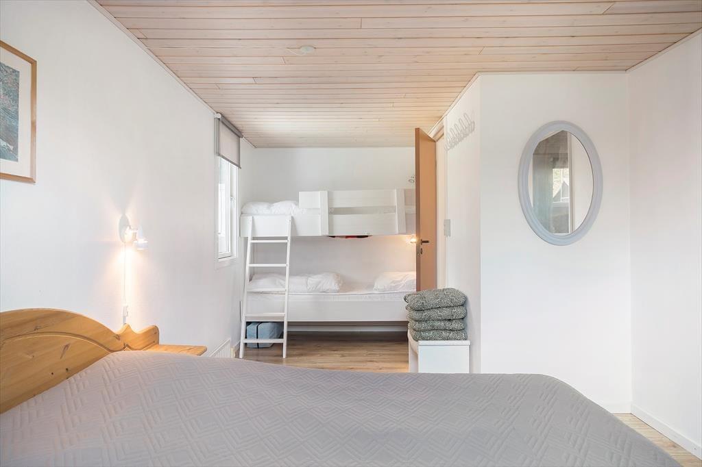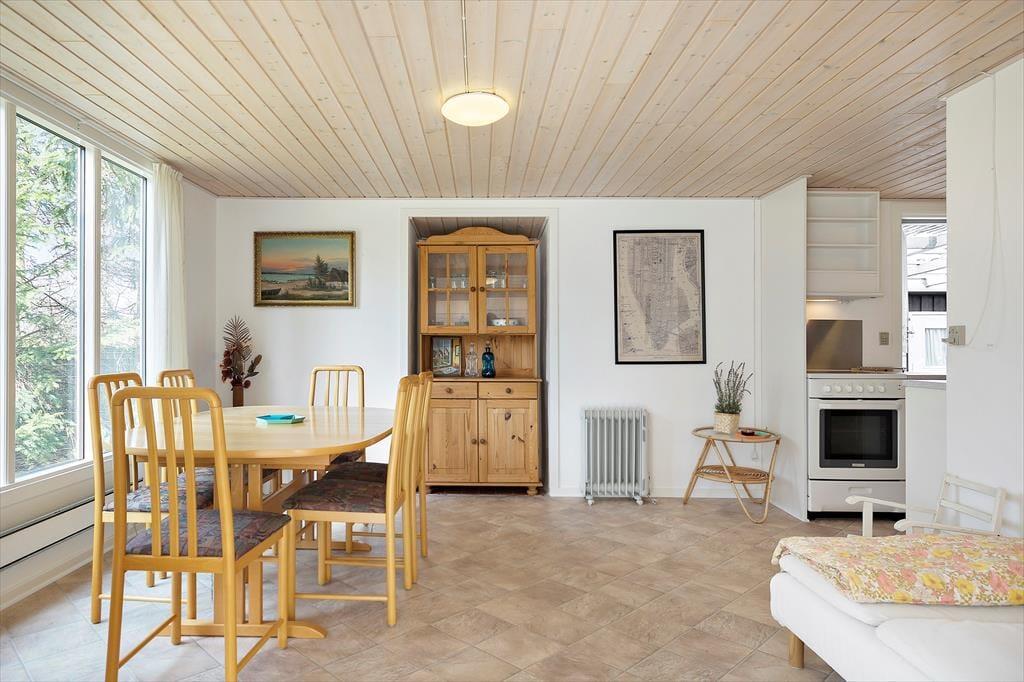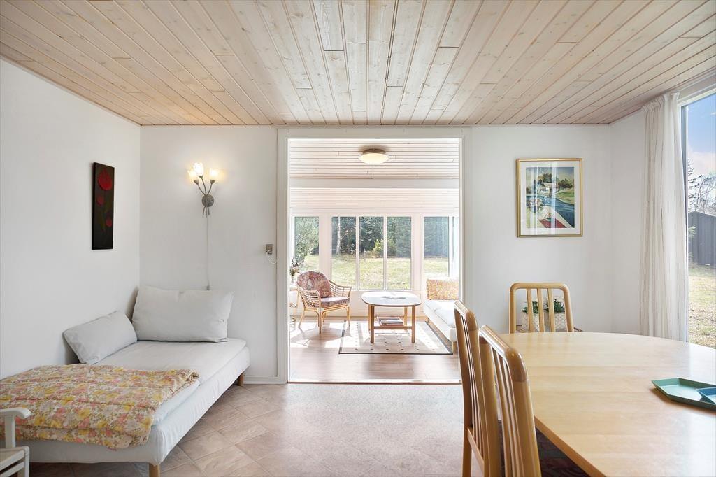 Velindrettet fritidshus med hyggeligt køkkenalrum med spiseområde nær køkkenet og tv-stue med sofa og lænestol. Fra køkkenalrummet er der indgang til separat toilet, samt soveværelse med dobbeltseng og to køjesenge. Der er desuden direkte forbindelse fra køkkenet til en dejlig overdækket terrasse samt den hyggelige have. Derudover er der et fint opvarmet anneks med to enkeltsenge, hvor badet også befinder sig, samt et ekstra toilet. Nabohus til M114.