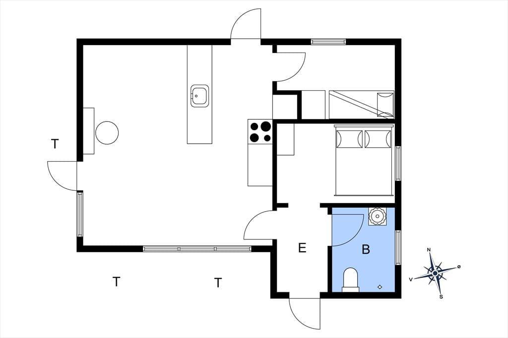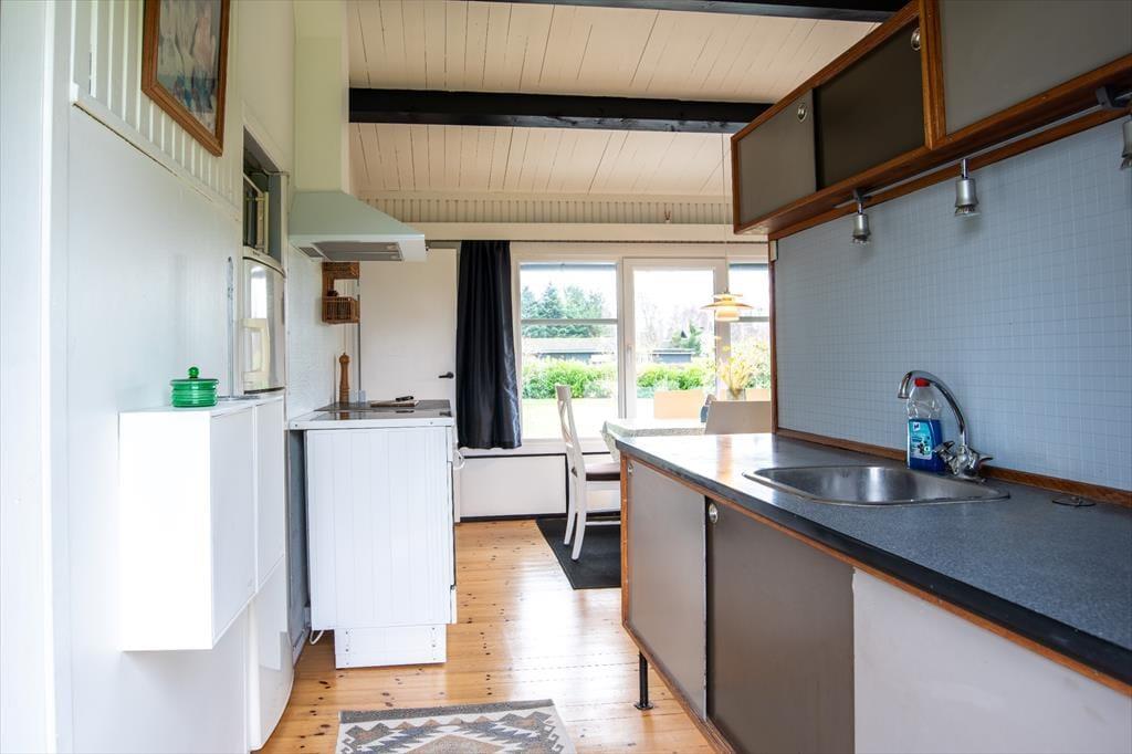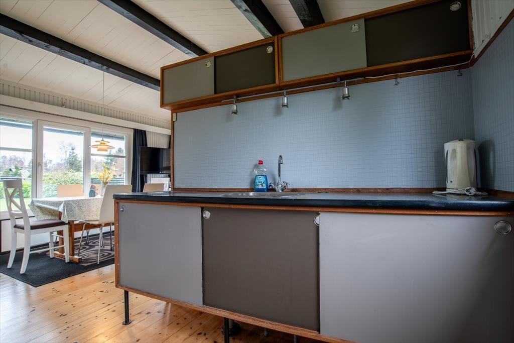 Sommerhuset indeholder: Entre, badeværelse med wc og bruser, 2 gode soveværelser med dobbeltseng i det ene soveværelse og køjeseng i det andet soveværelse. Derudover er der et åbent køkken, med spise område og sofaområde. I stuen er der brændeovn og udgangs til sommerhuset skønne terrasse.