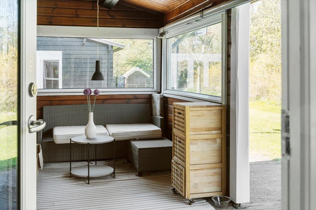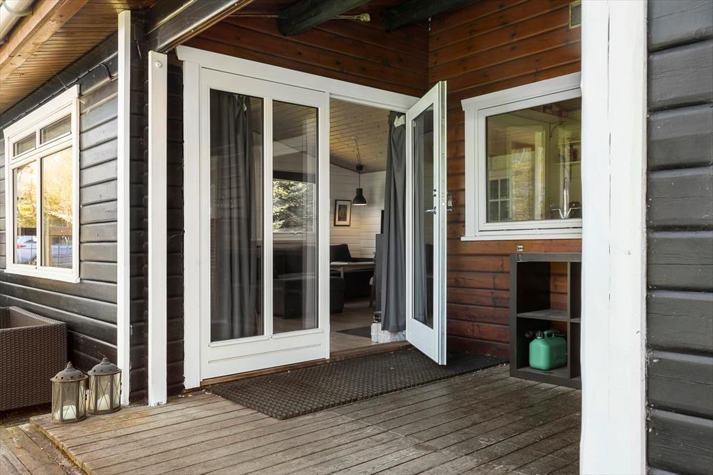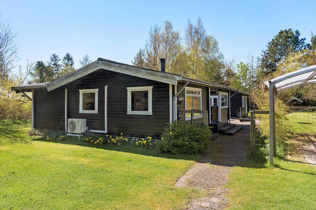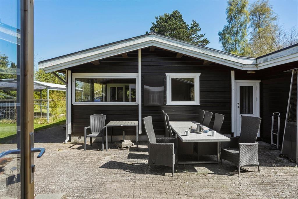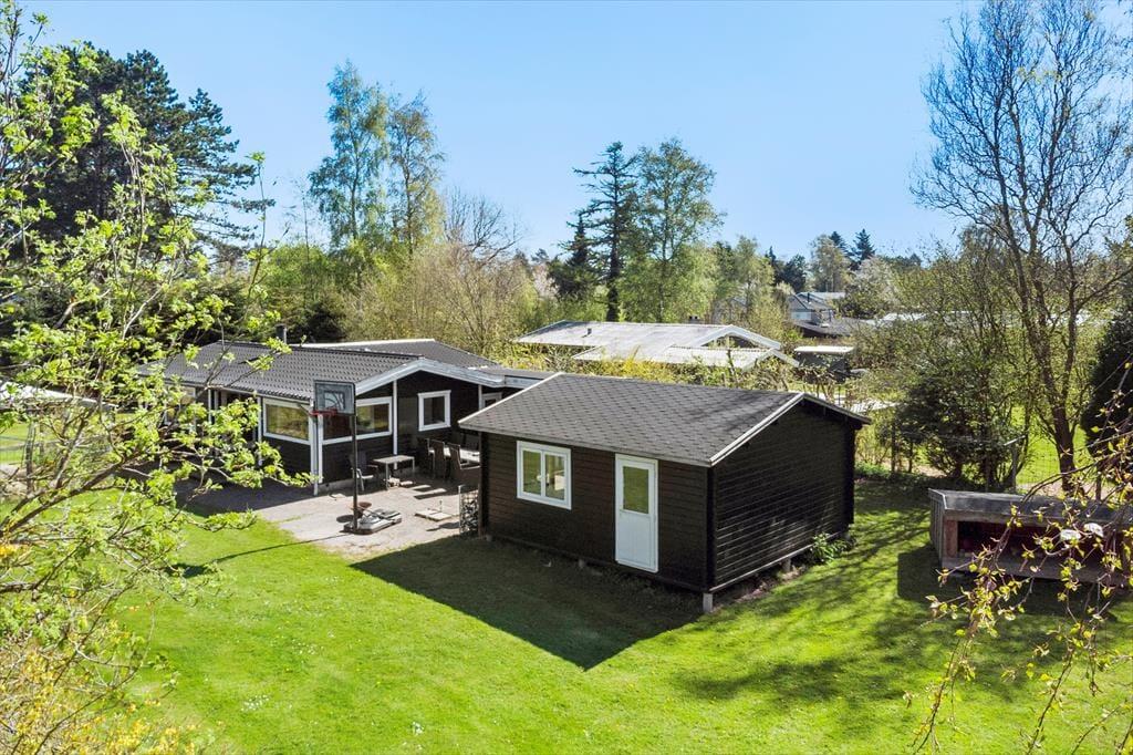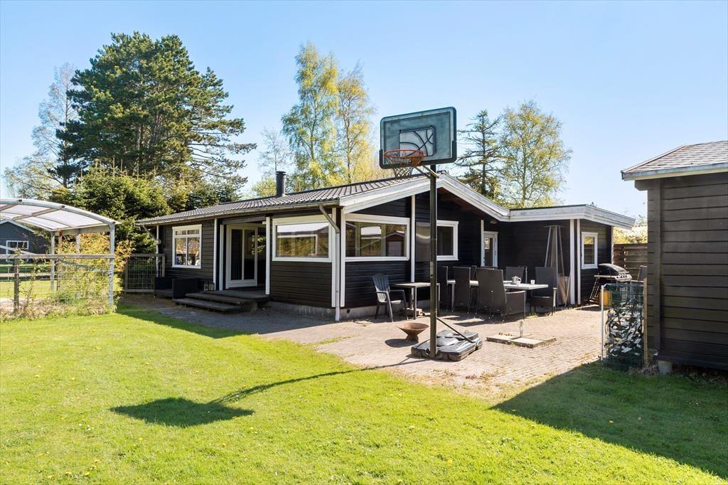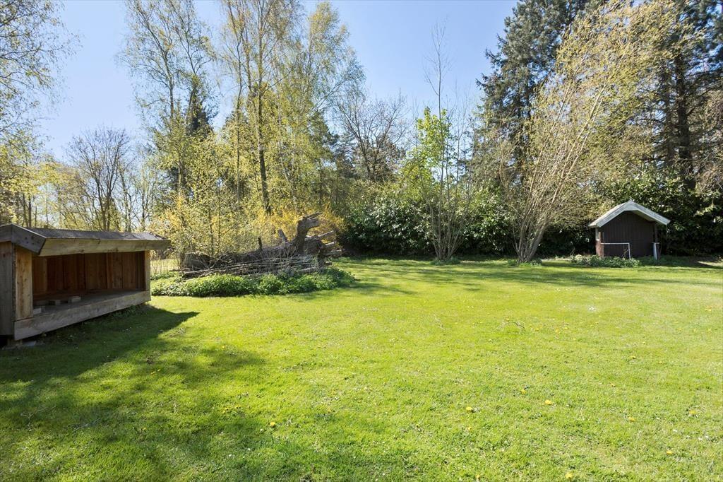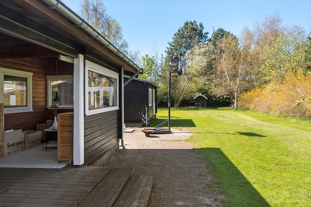 Feriehuset er beliggende på en 1376 m2 stor grund med masser af plads til aktiviteter på den skønne græsplæne. Endvidere af feriehuset 2 hyggelige terrasser, hvor af den ene af terrasserne er overdækket. Derudover er der shelter i haven, samt carport i indkørslen.