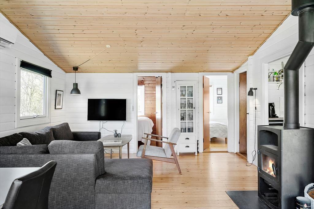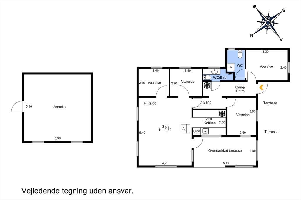 Lækkert og lyst feriehus som er blevet renoveret løbende i de sidste par år. Feriehuset indeholder 3 gode soveværelser med dobbeltseng i dem alle, et lækkert badeværelse med WC og bruser, samt gæstetoilet. Derudover er der stort anneks. Endvidere har feriehuset et stort køkken samt spiseområde og sofaafdeling, fra køkkenet af er der udgang til en hyggelig overdækket terrasse.