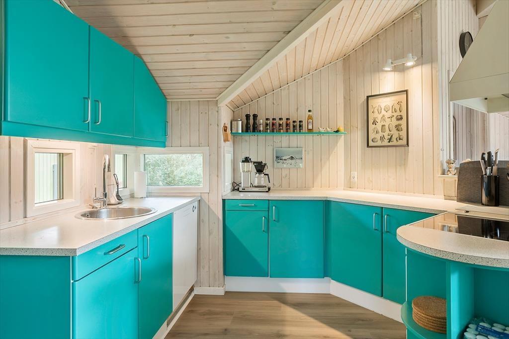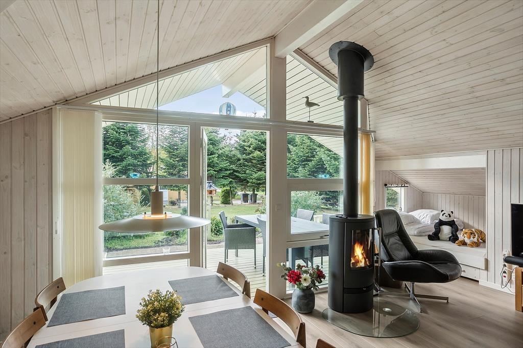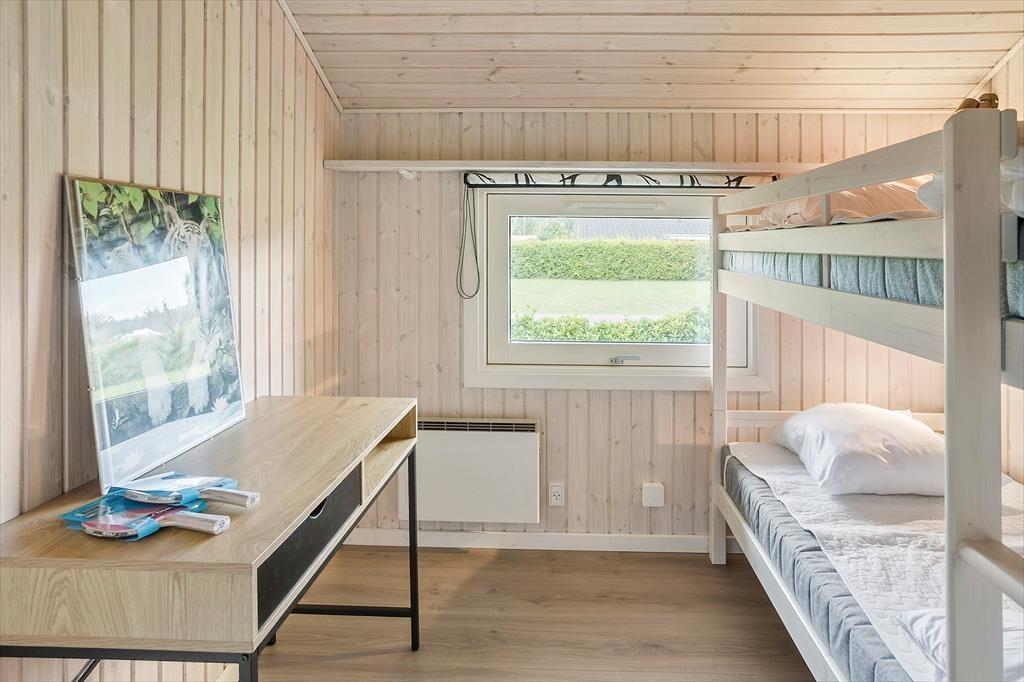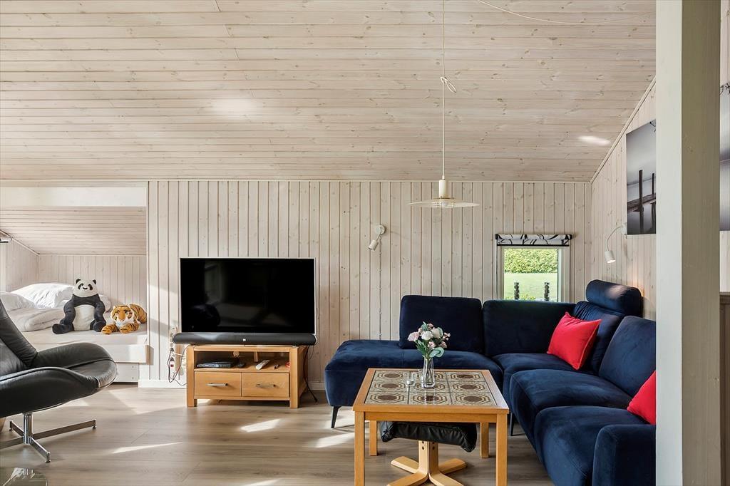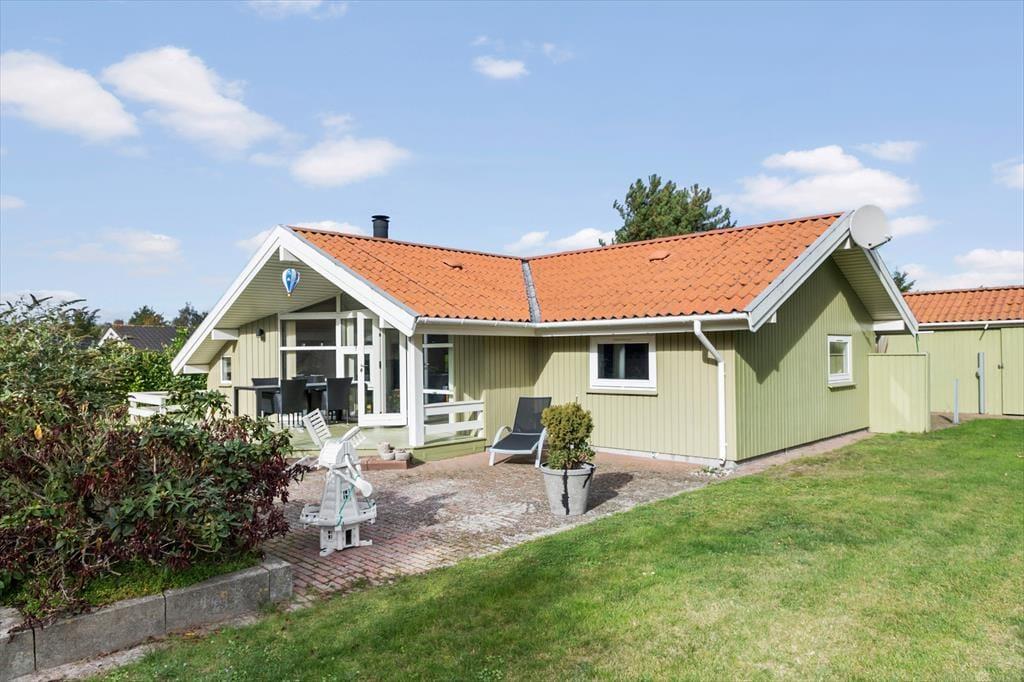 Huset indeholder entre, hvorfra der er indgang til husets badeværelse med wc, bruser og sauna. Derudover er der 3 gode soverum, med dobbeltseng i 2 af værelserne, og køjeseng i det 3 værelse. Huset indeholder et stort og lyst køkken-alrum hvor der er spise-, og sofaafdeling. I stuen er en hyggelig alkove med soveplads til 2 personer. Fra stuen er der udgang til den ene af husets skønne terrasser og husets skønne have.
