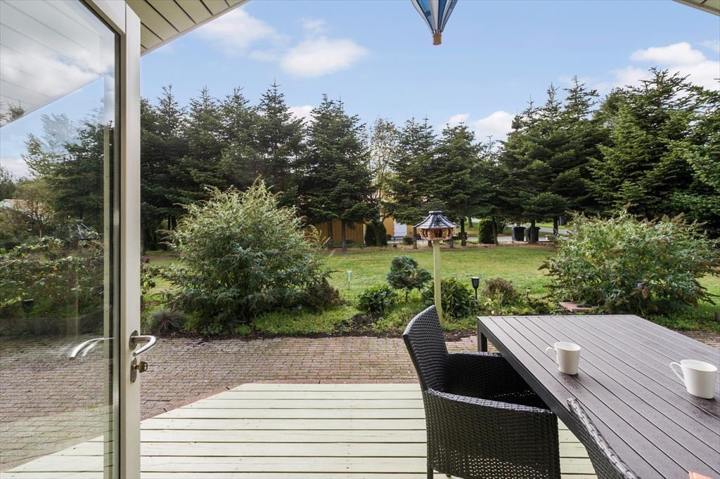 Stor og rummelig have med masser af plads til sjov og leg. På grunden er to terrasser, hvoraf den ene er delvist overdækket, med havemøbler og gril. Derudover er der carport til huset.