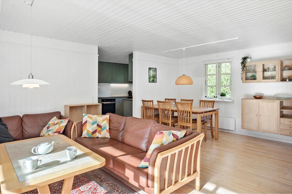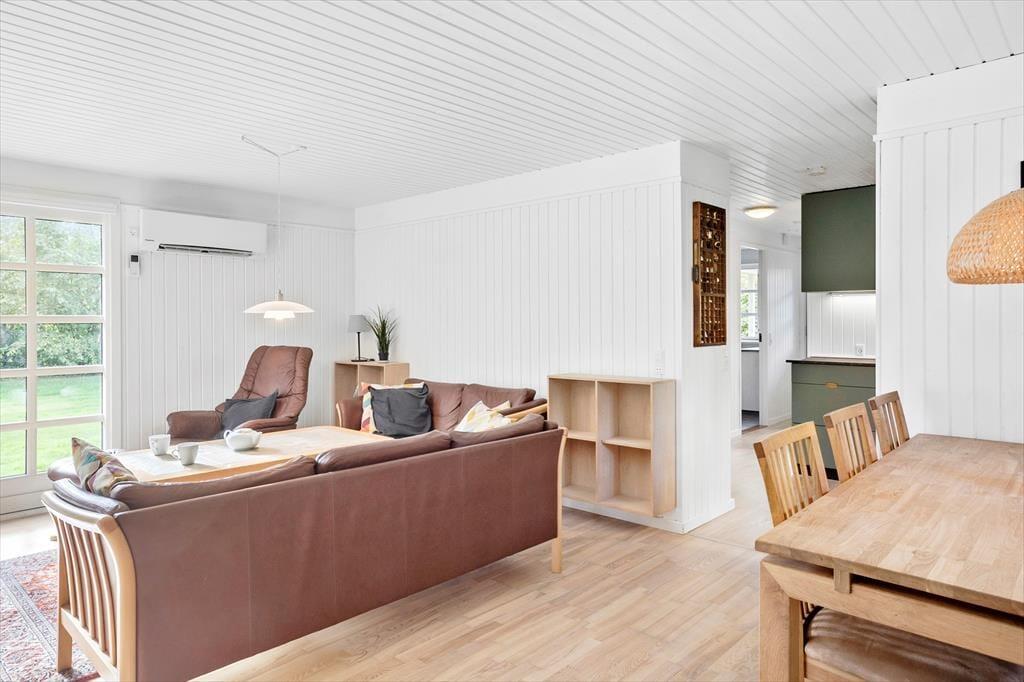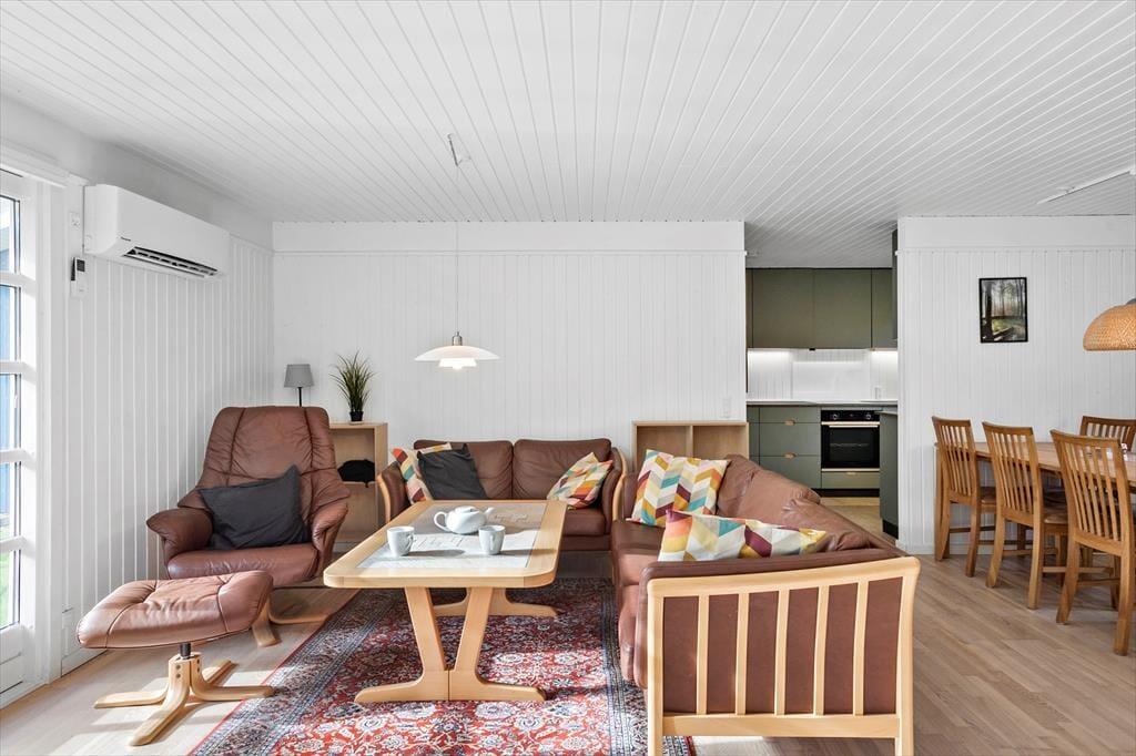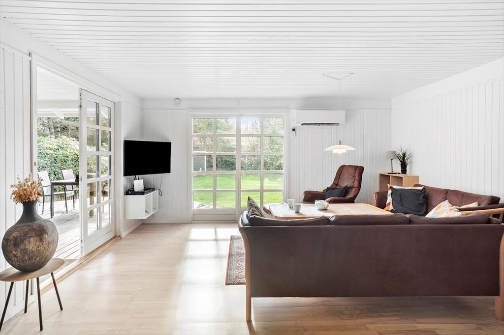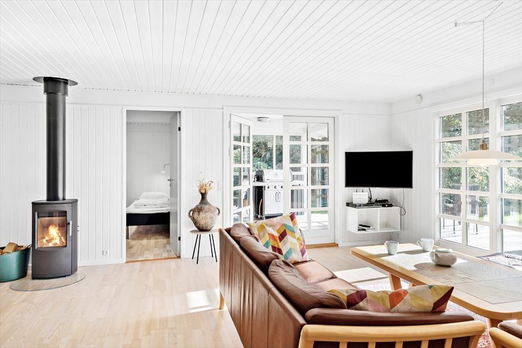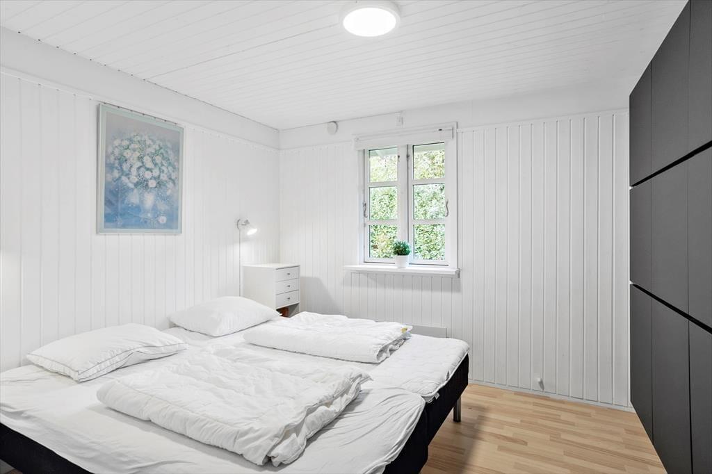 Dejligt og lyst feriehus som sætter de perfekte rammer for jeres ferie. Huset indeholder 2 gode soveværelser, 1 pænt lyst flisebadeværelse med WC og brusekabine, 1 god entré/bryggers med masser af plads til sko, jakker og opbevaring, et flot og moderne køkken som byder på alt hvad hjertet begærer og sidst men ikke mindst, husets stue, som indeholder en spiseafdeling i nærheden af køkkenet og en sofa- og tvafdeling i den anden side. Fra stuen er der ligeledes udgang til den delvist overdækkede træterrasse og haven.