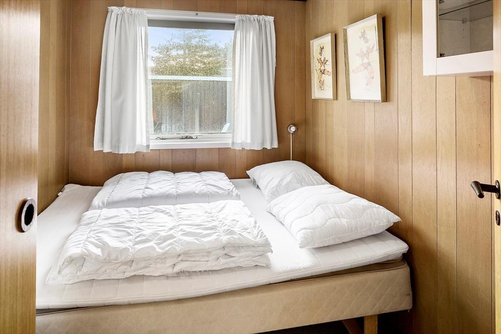 Dette skønne fritidshus byder på 3 gode soveværelser, med dobbeltseng i 2 af soveværelserne, og en dobbelt sovesofa i det sidste soveværelse. Huset har et badeværelse med wc og bruser. Dernæst har huset et køkken, hvor der er udgang til stuen og spiseområde. Fra stuen er der udgang til husets overdækkede terrasse.