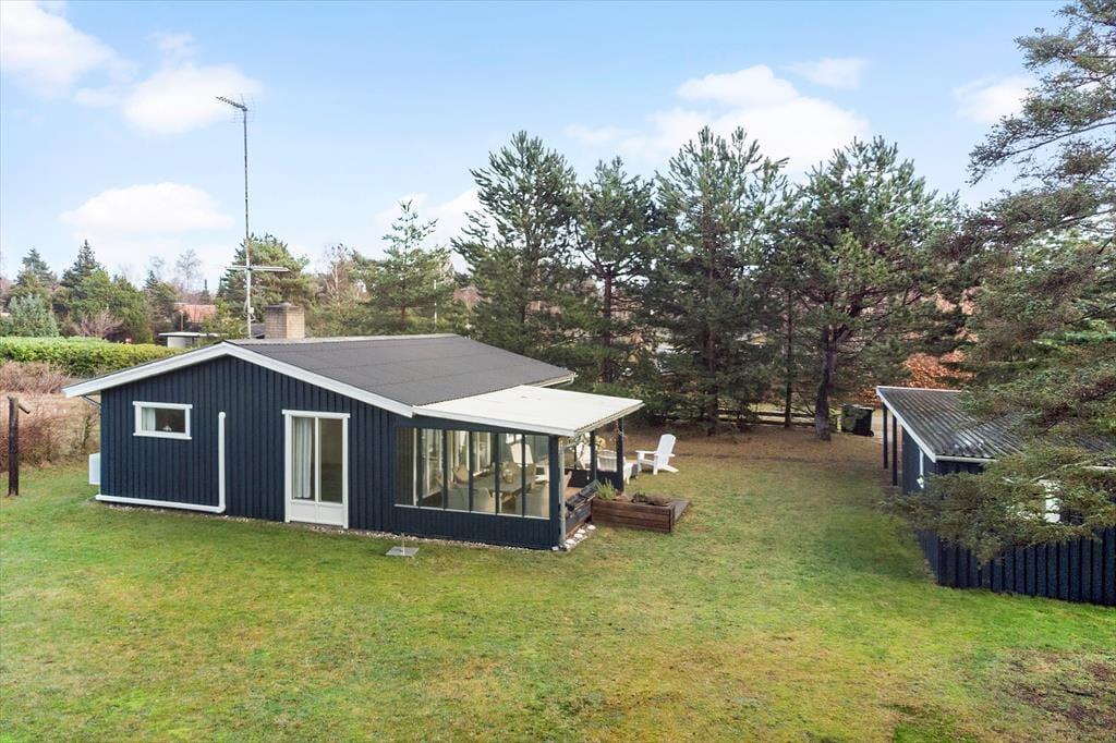 Huset ligger på en 1200 m2 stor grund og kun 600 meter fra vandet. Til huset er en skøn terrasse med havemøbler. Derudover har huset en dejlig stor have som byder på en masse sjov og leg, sammen med familie og venner. Bilen kan parkeres ved huset.