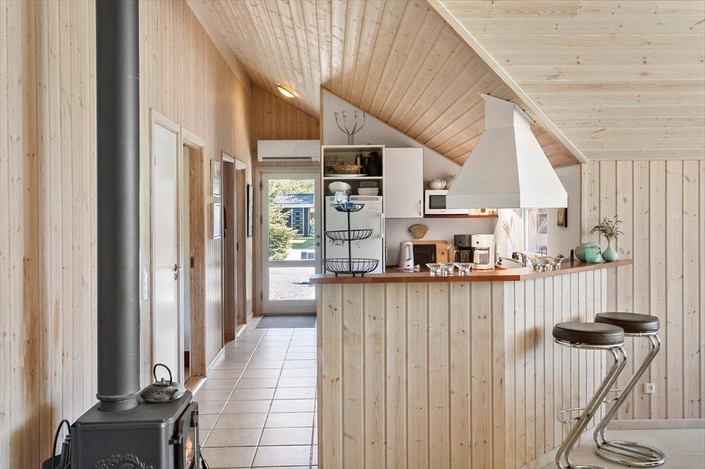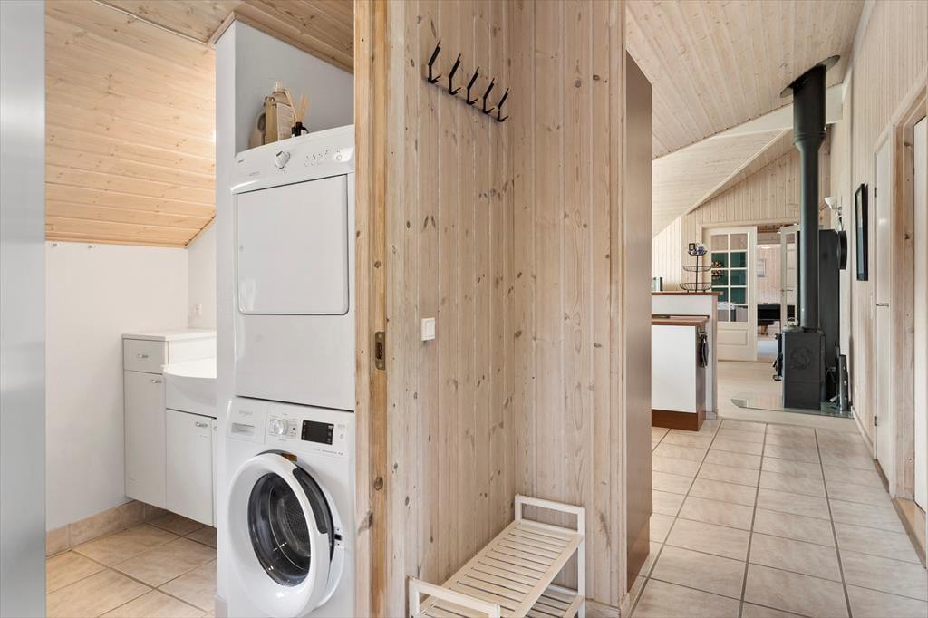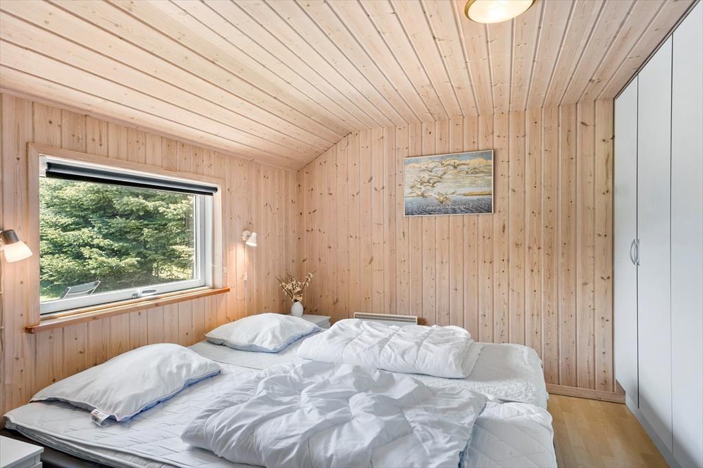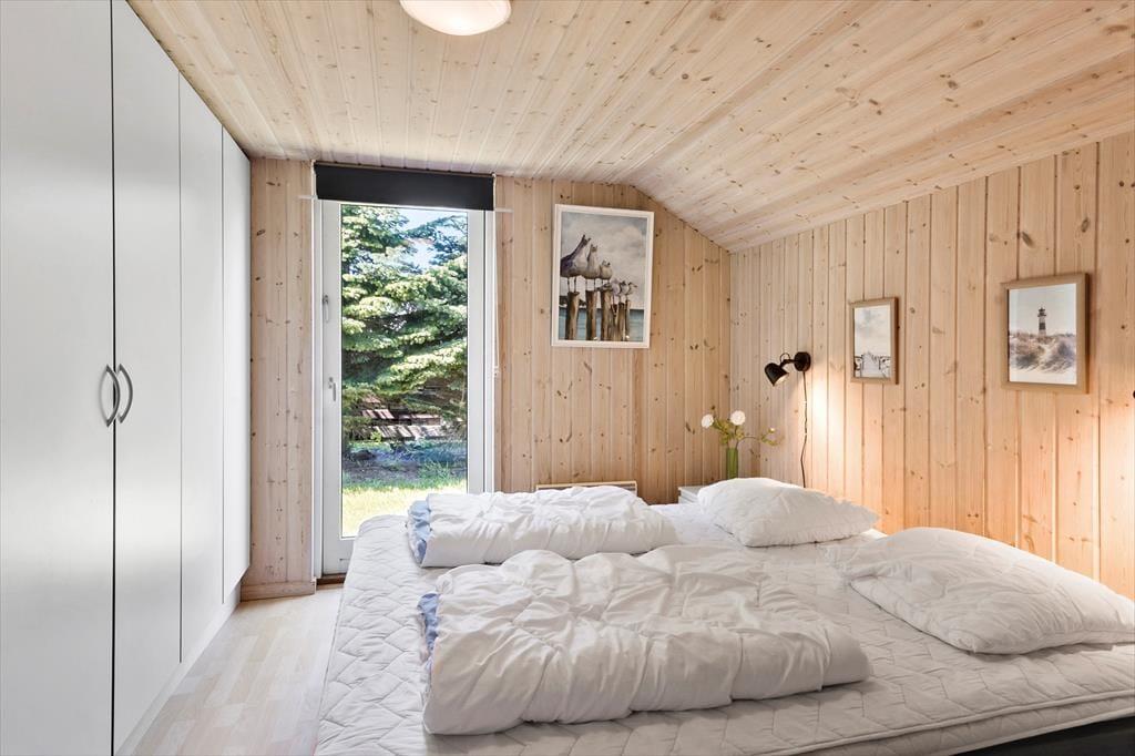Dette skønne feriehus består af en entre, 4 gode soveværelser, hvor der er dobbeltseng i 2 af soveværelserne og 2 enkeltmandssenge i de andre 2 soveværelser. Det sidste soverum er husets hems, hvor der er 4 madrasser. Derudover har feriehuset 2 badeværelser, hvor der i det ene er wc, bruser, vaskemaskine og tørretumbler og i det andet er der wc, bruser, spabad og sauna. Hernæst har feriehuset et skønt åbent køkken, med udgang til spiseområde og stuen. Fra stuen er der udgang til feriehusets skønne terrasse og have.