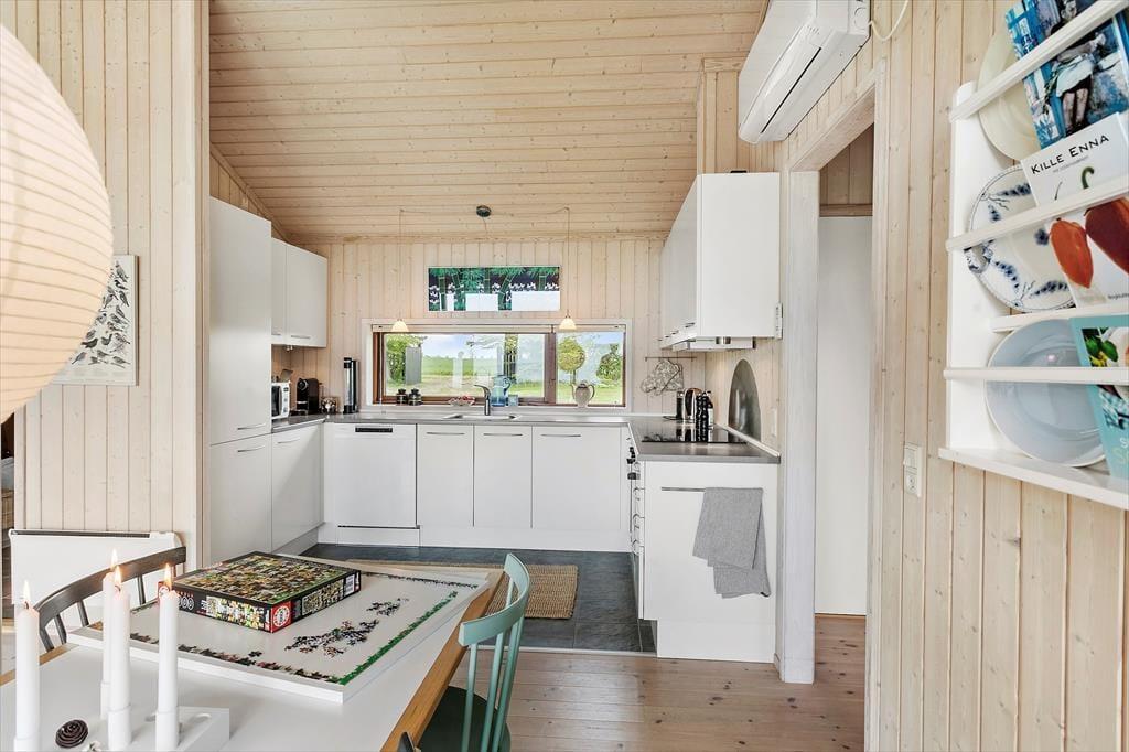 Dette helt unikke feriehus i første række til vandet, byder på 3 soveværelser med dobbeltseng i 2 af værelserne og en enkeltmandsseng i det sidste værelse. Hernæst har feriehuset et badeværelse med wc, bruser og vaskemaskine. Derudover har huset et skønt åbent køkken med udgang til stuen og spisestuen. Fra køkkenet og stuen er der ligeledes direkte udsigt ud over den skønne Østersø. Fra stuen er der udgang til feriehusets skønne terrasser og have.