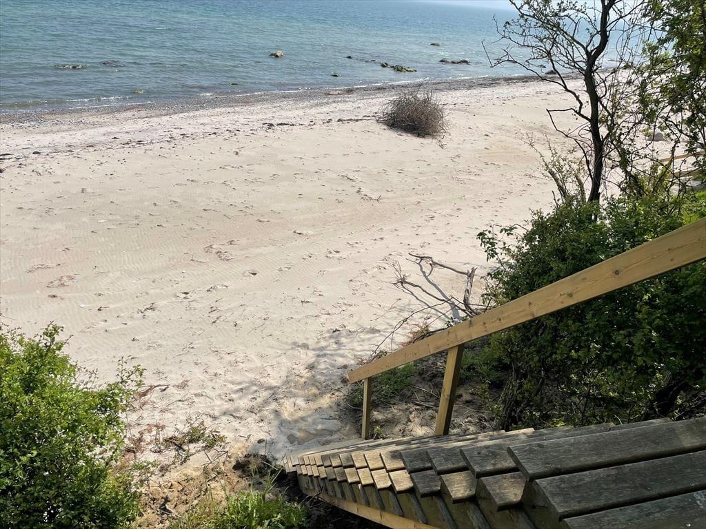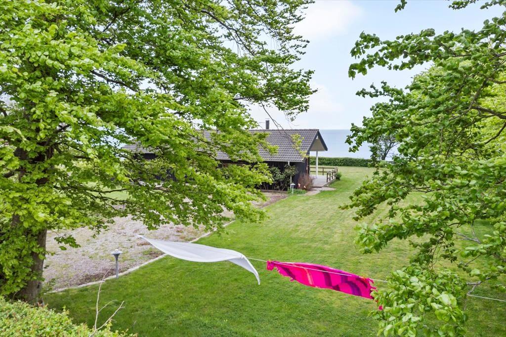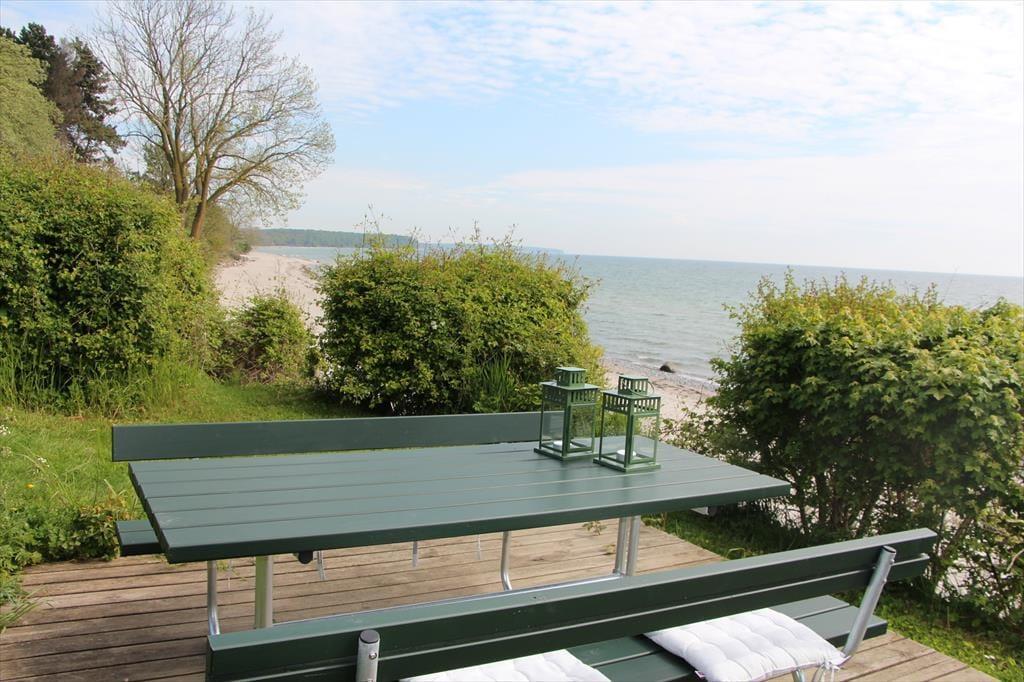 Feriehuset er beliggende i 1. række til vandet, hvilket er en helt særlig beliggenhed. Feriehuset er beliggende på en 2700 kvm stor grund, hvor der er plads til en masse aktiviteter og leg. Til feriehuset er der en skøn terrasse, hvor der er havemøbler og grill. Desuden har feriehuset yderligere en terrasse helt ude mod vandet med bord-bænkesæt med den flotteste udsigt over strand og kystlinje. På grunden er der også en hængekøje, hvor mange gode timer kan nydes, med udsigt over Østersøen.