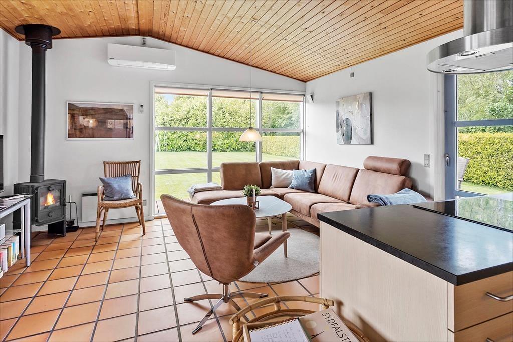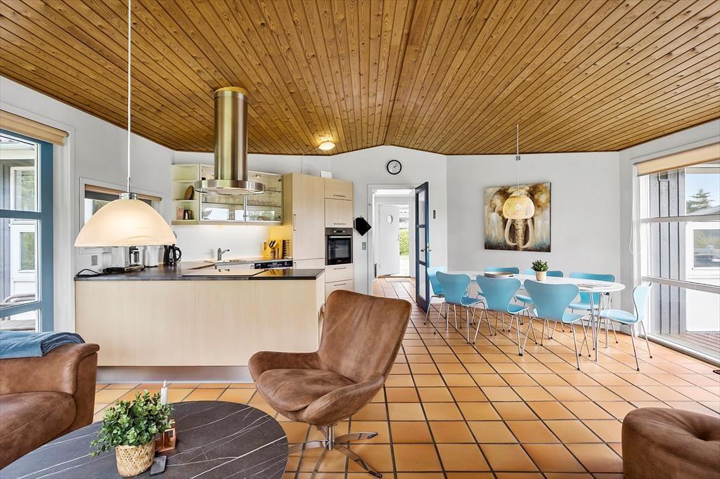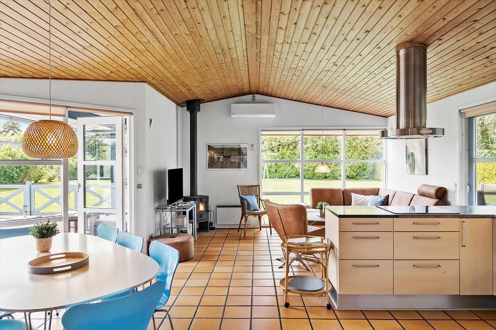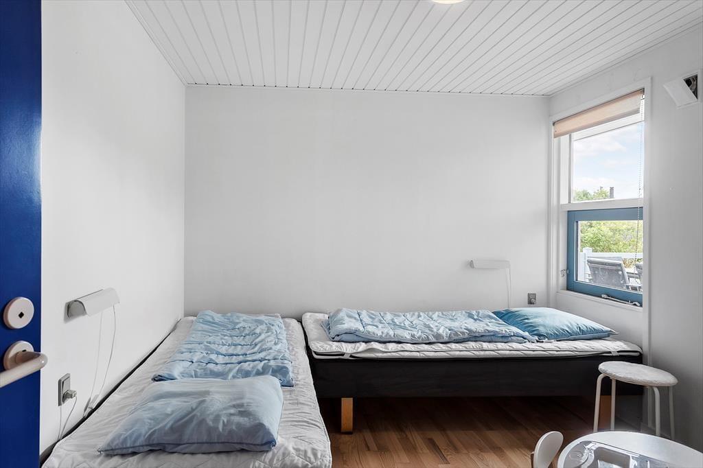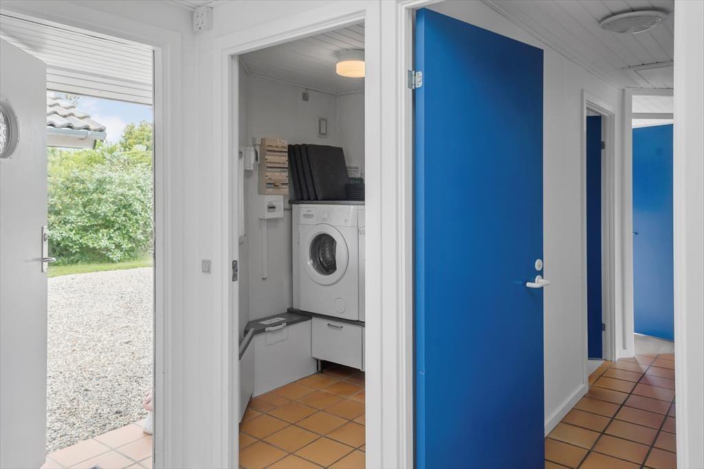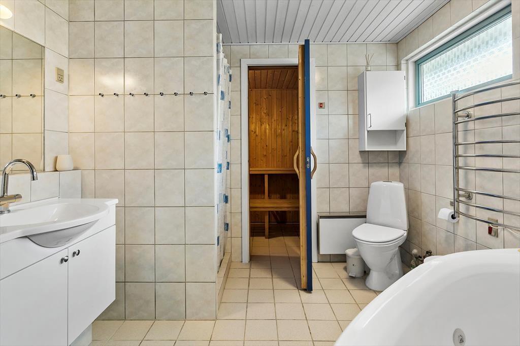 Feriehuset byder på en entre, med vaskemaskine og tørretumbler. Derudover er der 4 gode soveværelser, hvor der er dobbeltseng i 2 af soveværelserne og 2 enkeltmandssenge i de sidste 2 soveværelser. Feriehuset har 1 badeværelse, hvori der findes wc, bruser, spabad og sauna, og 1 gæstetoilet med wc og håndvask. Sidst, men absolut ikke mindst tilbyder feriehuset et åbent køkken i forbindelse med spiseområde og stue og videre udgang til feriehusets skønne terrasseområde.