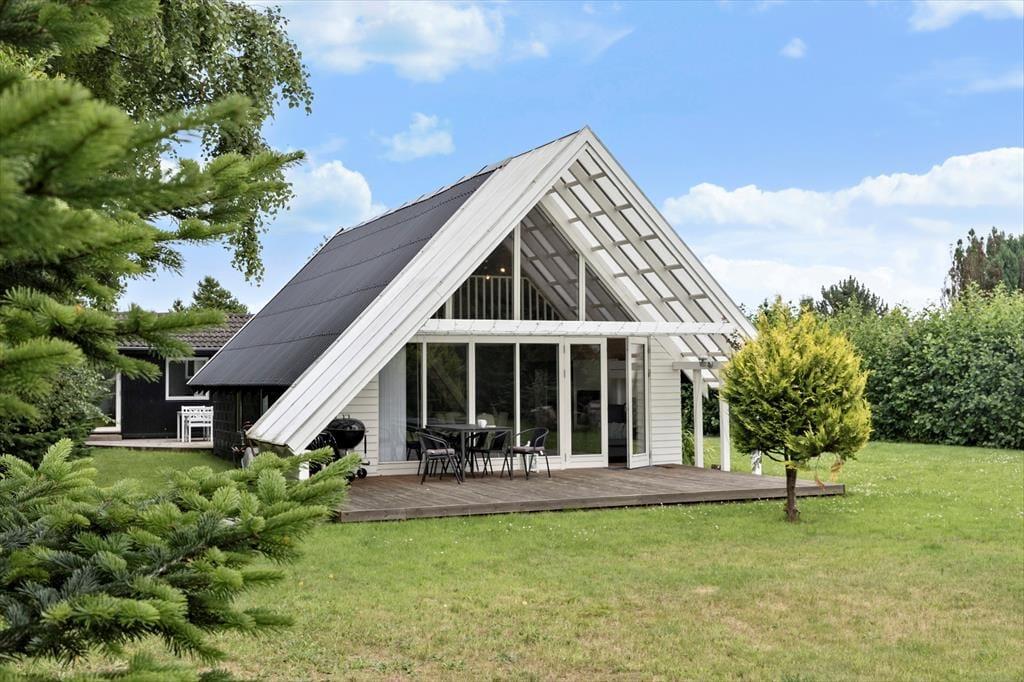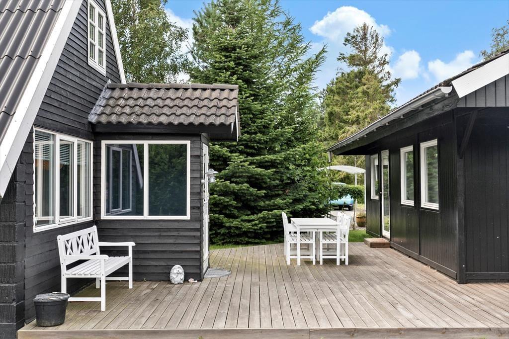Feriehuset ligger på en 1000 kvm stor grund, med en skøn græsplæne der indbyder til leg og aktivitet. Derudover byder huset på en skøn terrasse, som er delvist overdækket. På terrassen finder man havemøbler og grill.