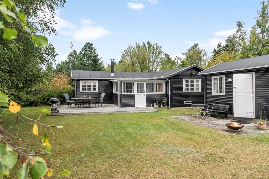 Feriehuset er beliggende på en 1080 m² stor havegrund. Til feriehuset er en skøn terrasse med havemøbler og grill. Derudover er der en stor græsplæne, hvor der er plads til en masse sjov og leg. Der er parkeringsplads ved feriehuset.