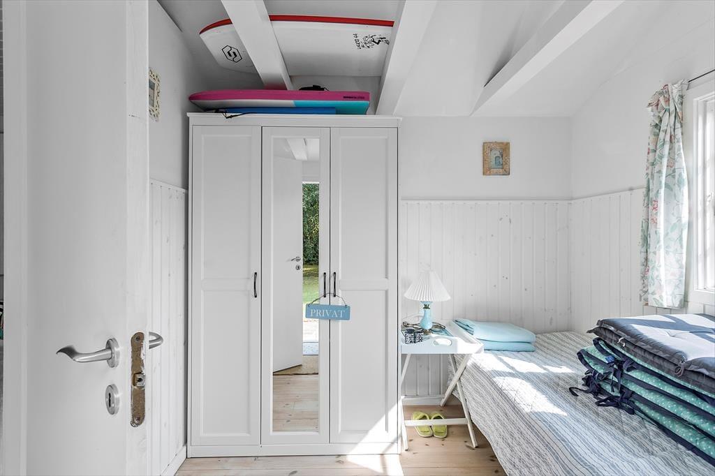 Dette hyggelige feriehus indeholder: to gode soveværelser med dobbeltsenge i det ene værelse og dobbeltseng i det andet værelse. Der er derudover et anneks til feriehuset, hvor der er en dobbelt sovesofa. I feriehuset er et badeværelse med wc og bruser. Til sidst har feriehuset et køkken, hvor der også er vaskemaskine. Fra køkkenet er der udgang til stuen og spisestuen. Fra stuen og spisestuen er der udgang til feriehusets skønne terrasse og have.