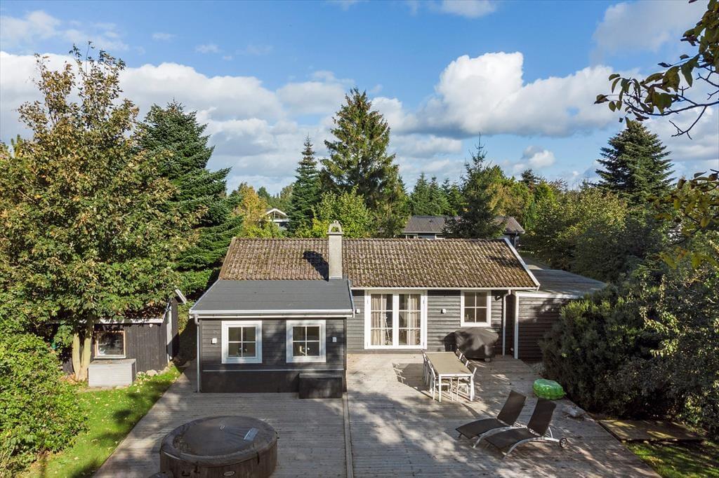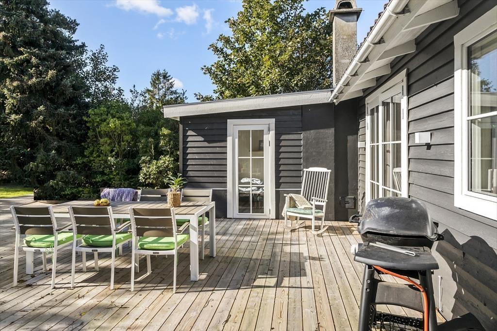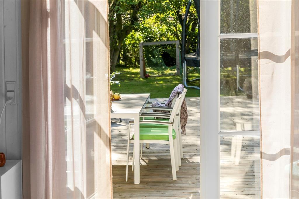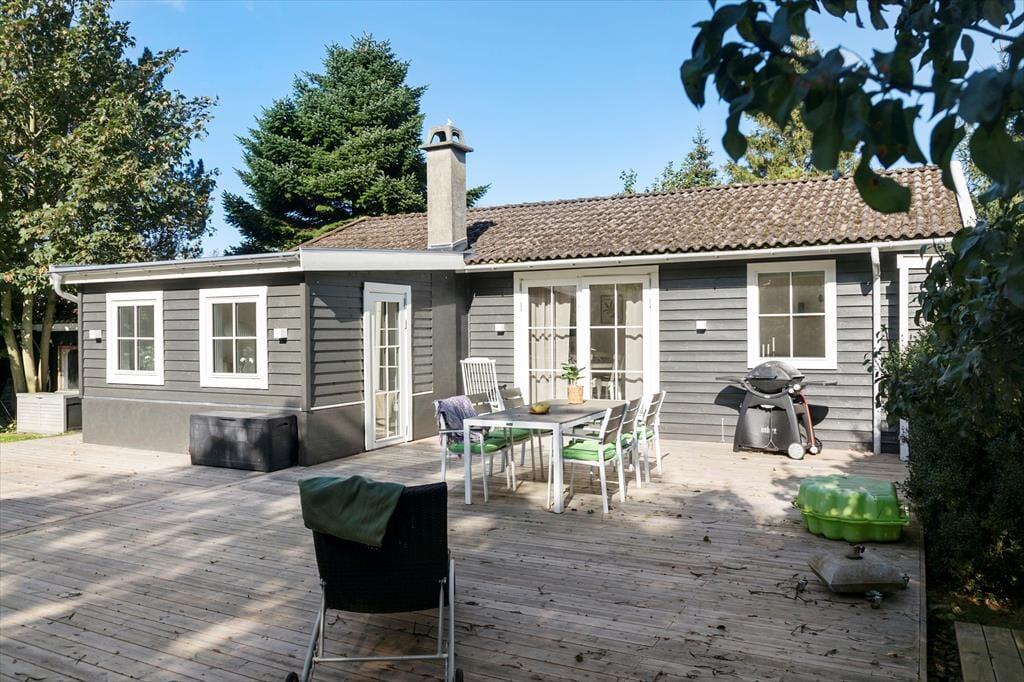 Feriehuset er beliggende på en 1000 kvm stor grund, hvor der er plads til en masse aktiviteter i haven. Feriehuset har en skøn terrasse med havemøbler, liggestole og grill.