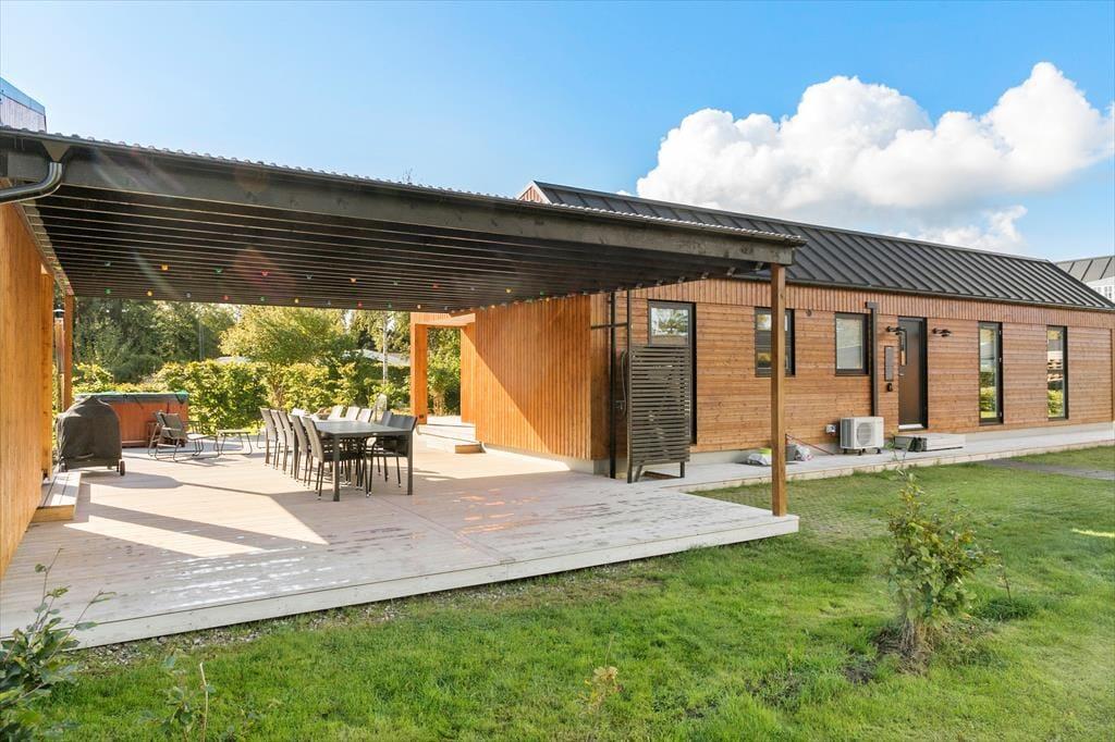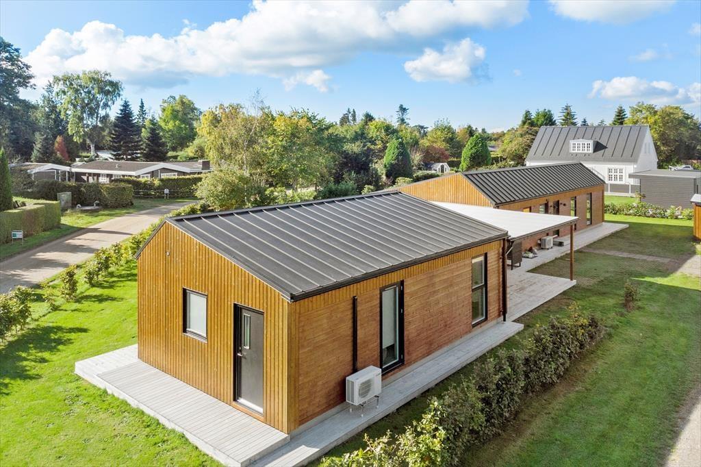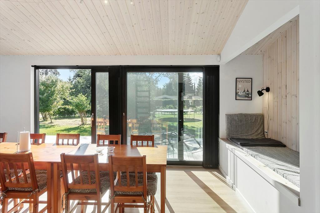 Dette skønne feriehus er beliggende på en 1330 kvm stor grund. Feriehuset har en stor god terrasse, hvor der er liggestole, havemøbler og grill. Terrassen er delvist overdækket. Ved feriehusets terrasse er et vildmarksbad, hvor en masse gode timer kan bruges. Derudover har feriehuset en stor græsplæne, hvor der er plads til en masse til en masse sjov og leg.
