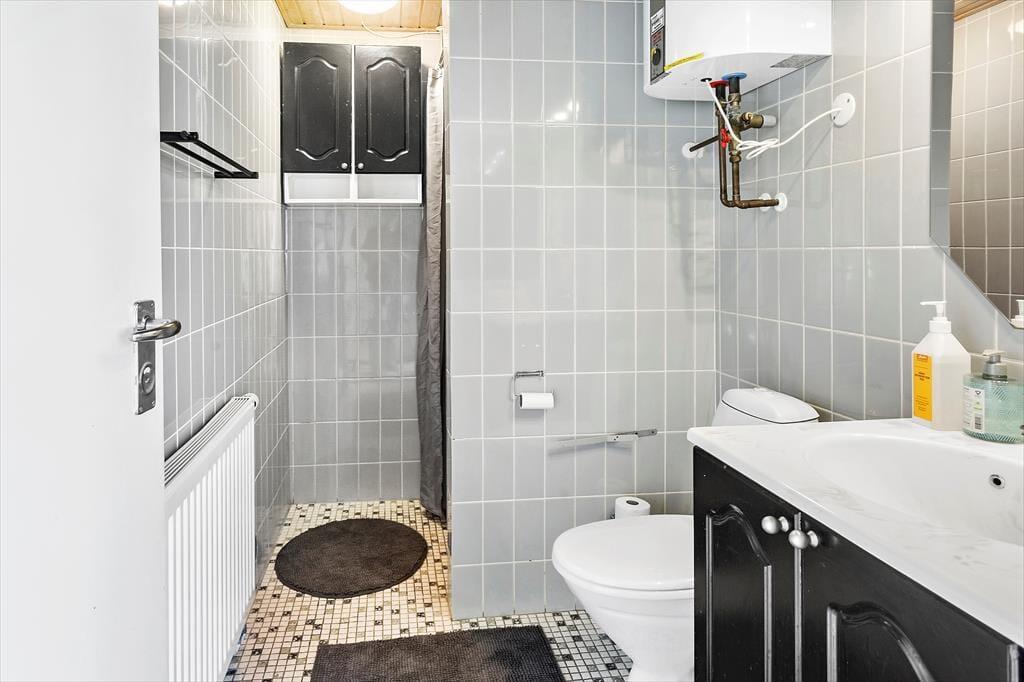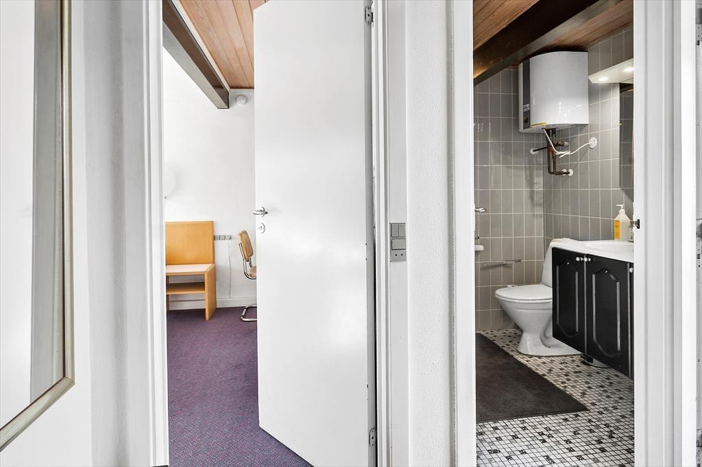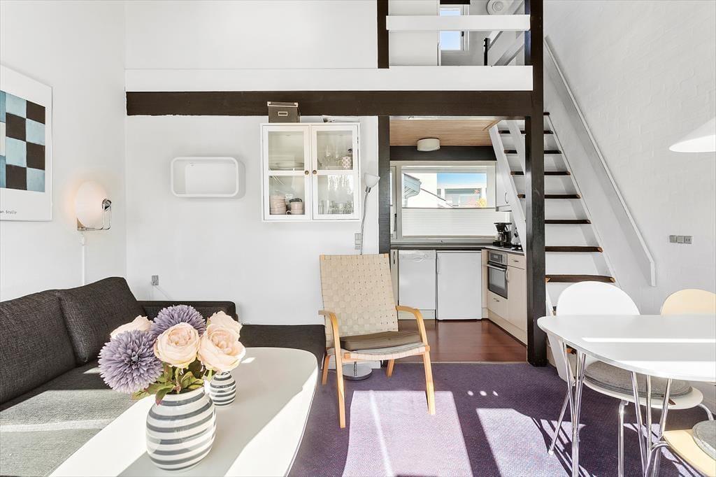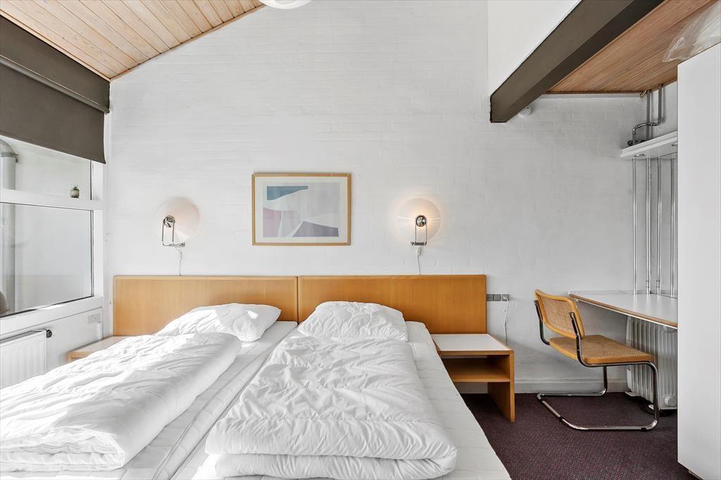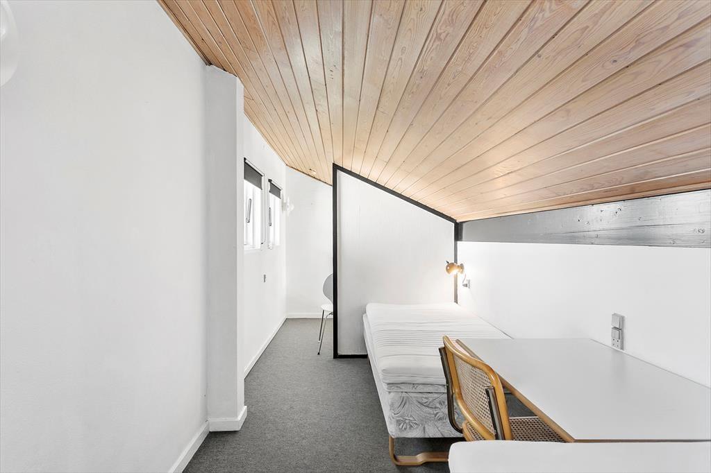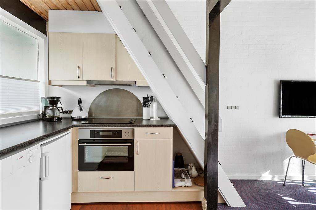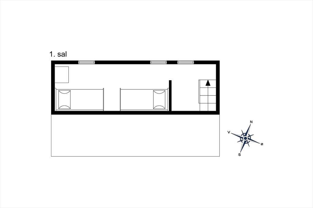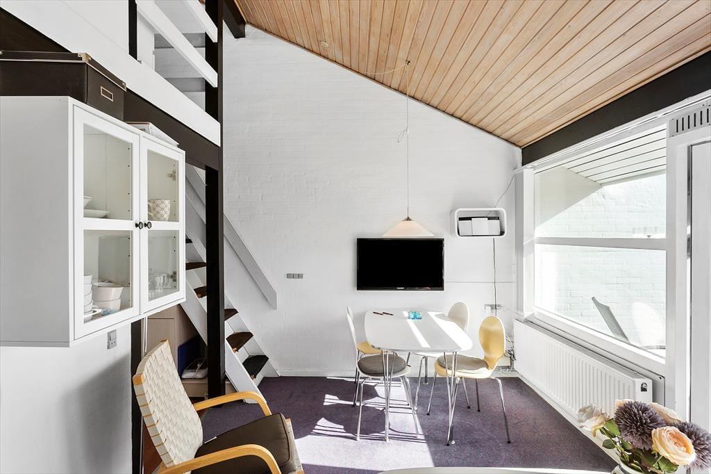 Lejligheden består af entre, fra entreen er der indgang til badeværelse med toilet, bruser og håndvask. Derudover er der et soveværelse på stueetagen hvor der er dobbeltseng, skab, samt udgang til terrasse. På førstesalen er endnu et soveværelse med to enkeltmands senge. Til sidst byder lejligheden på åbent køkken, med udgang til stue og spiseafdeling, hvor der også er udgang til terrassen.