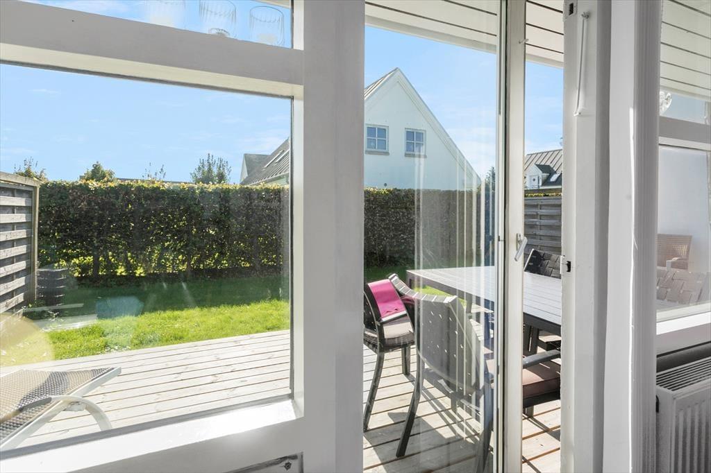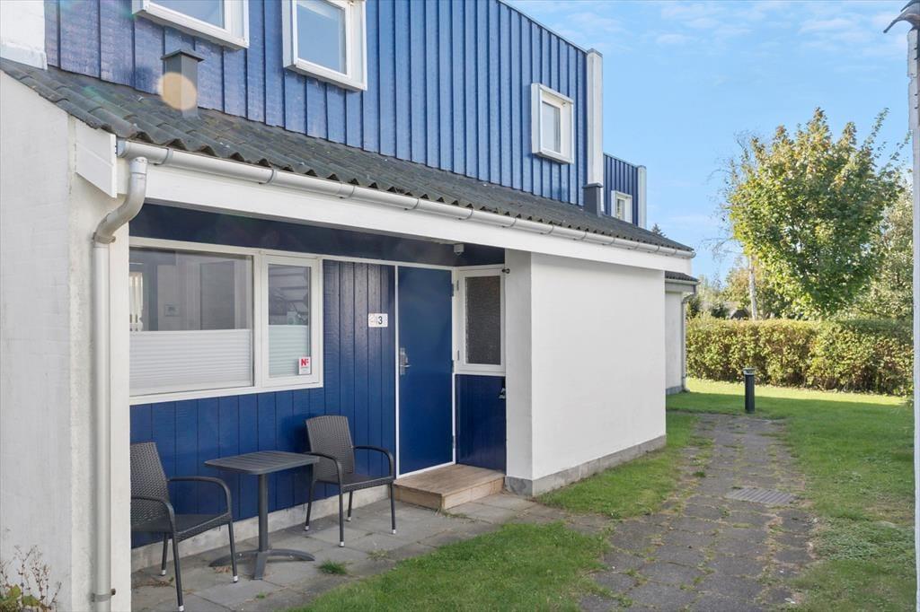 Til lejligheden hører 2 små terrasser, en lille hyggelig privat terrasse på bagsiden af lejligheden, og en lille terrasse foran lejligheden. Der er havemøbler på begge terrasser og grill på den ene af terrasserne. Lejligheden er en ende lejlighed, hvor der kun er nabo på den ene side.