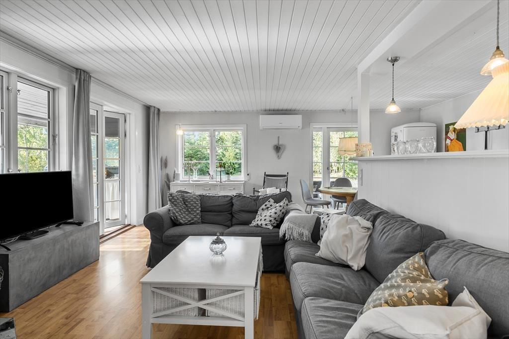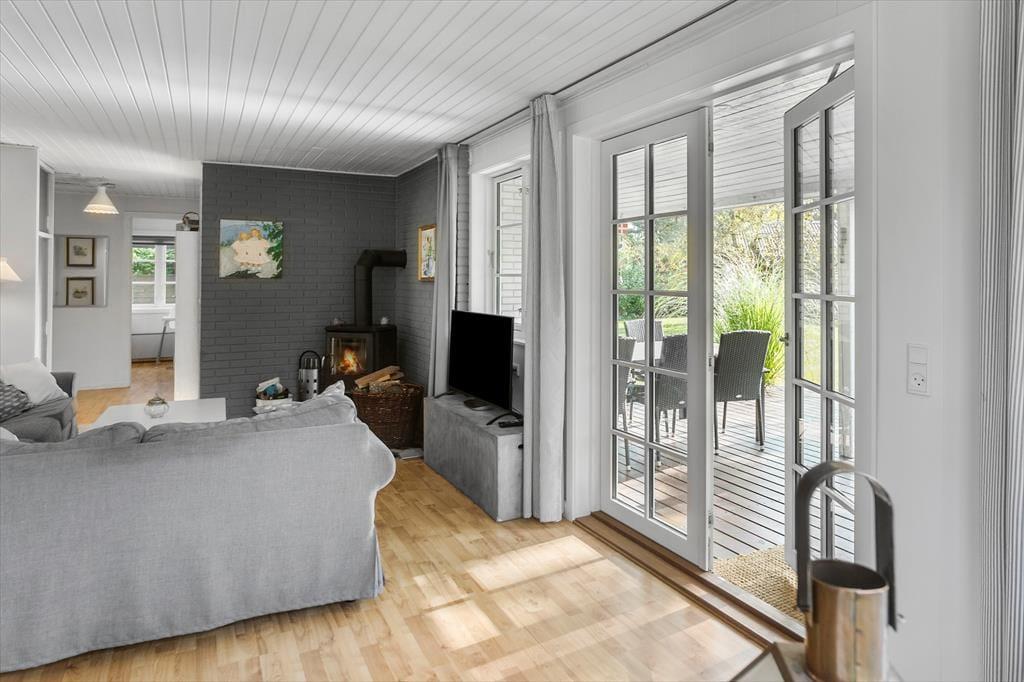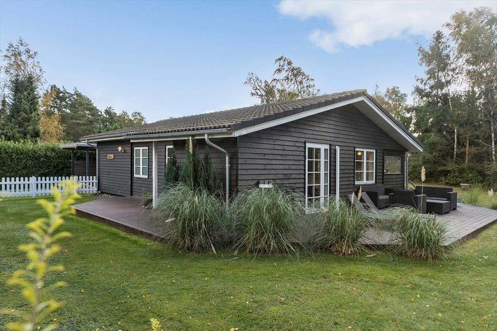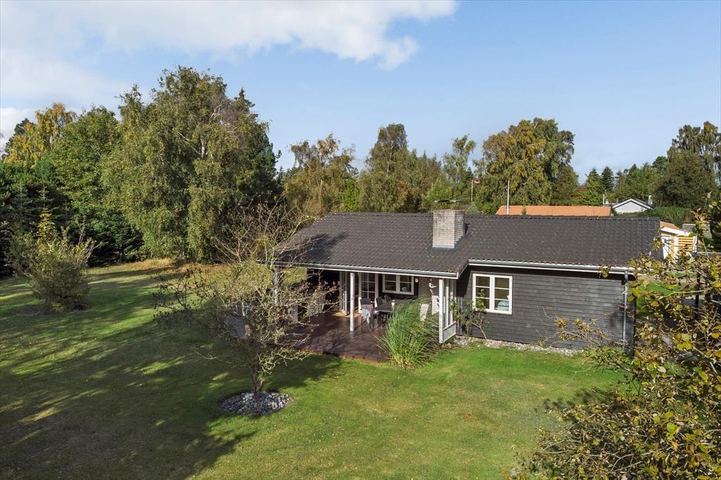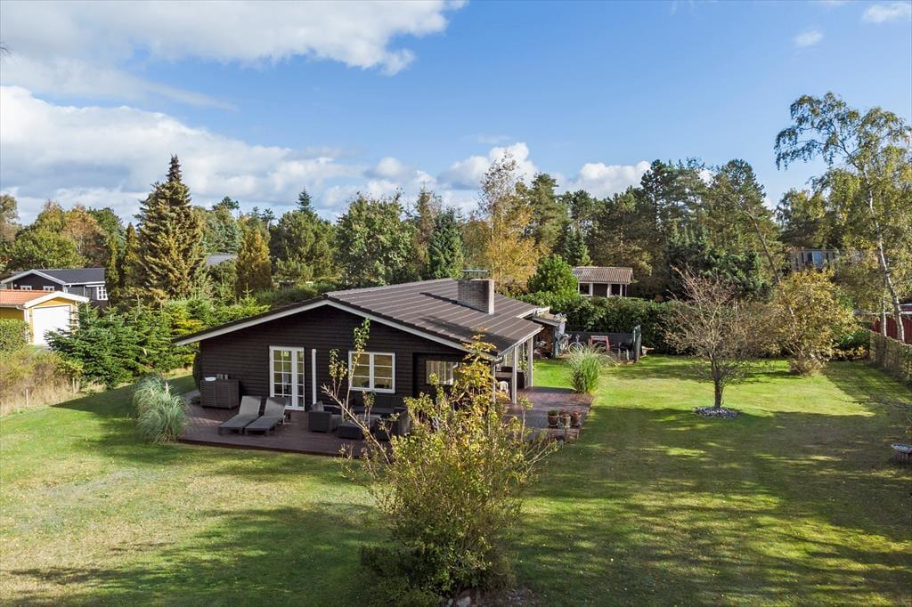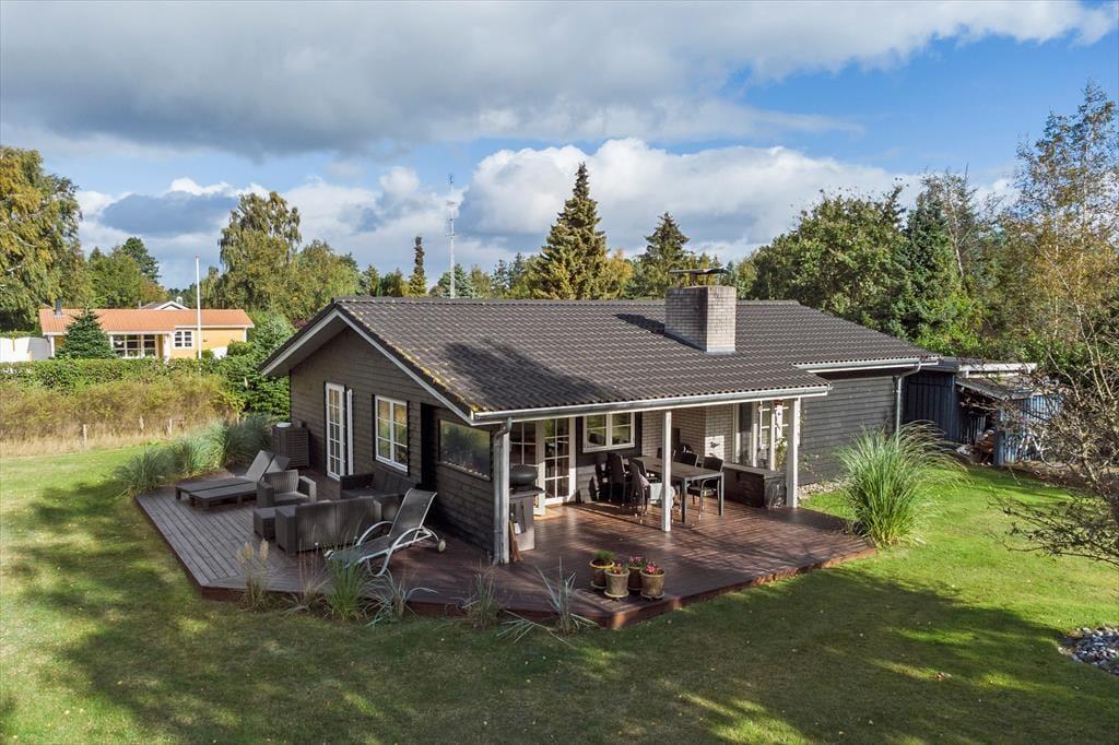Huset ligger på en 1250 m2 stor grund og kun 750 meter fra vandet. Til huset er en stor skøn terrasse hvor der er udgang fra feriehusets stue. På terrassen finder man grill, havemøbler og liggestole. Derudover har huset en skøn græsplæne, hvor der er plads til en masse sjov og leg, sammen med familie og venner. Til huset er en carport, hvor bilen kan parkeres.