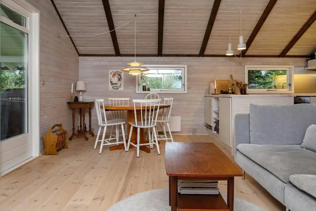 Dette sommerhus byder på 2 gode soveværelser, med dobbeltseng i det ene og køjeseng i det andet soveværelse. Dernæst har huset et badeværelse med wc og bruser. Derudover har huset det skønne køkken-alrum med spiseafdeling og sofaområde. I stuen er den hyggeligste alkove og brændeovn. Fra stuen er der udgang til husets terrasse.