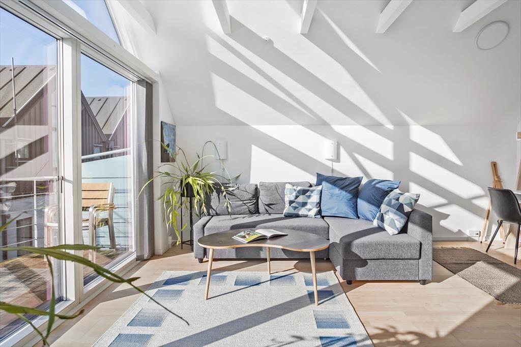 Til lejligheden hører en skøn delvis overdækket terrasse med havemøbler. Til ferielejligheden er der gode parkeringsforhold lige ved døren til lejligheden.