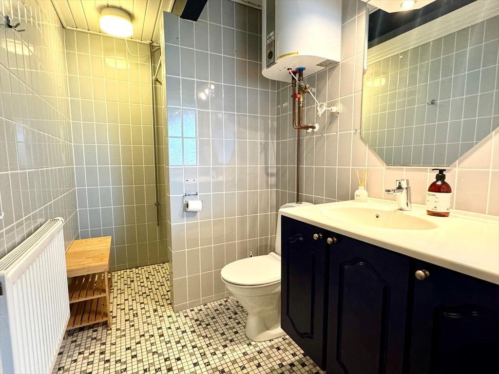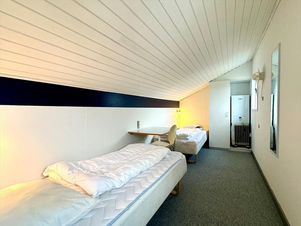 Lejligheden består af entre, fra entreen er der indgang til badeværelse med toilet, bruser og håndvask. Derudover er der et soveværelse på stueetagen hvor der er dobbeltseng, skab, samt udgang til terrasse. På førstesalen er endnu et soveværelse med to enkeltmands senge. Til sidst byder lejligheden på åbent køkken, med udgang til stue og spiseafdeling, hvor der også er udgang til terrassen.