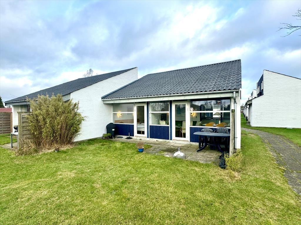 Til lejligheden hører 2 små terrasser, en lille hyggelig privat terrasse på bagsiden af lejligheden, og en lille terrasse foran lejligheden. Der er havemøbler på begge terrasser og grill på den ene af terrasserne. Lejligheden er en ende lejlighed, hvor der kun er nabo på den ene side.