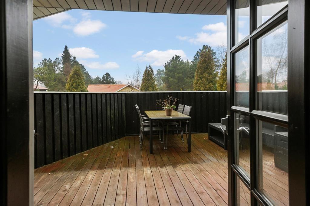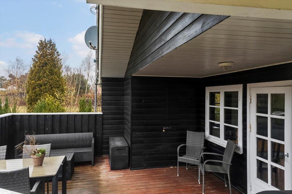 Sommerhuset byder på en hyggelig terrasse, som er delvist overdækket. Derudover er der en stor græsplæne, hvor der er plads til en masse sjov og leg.