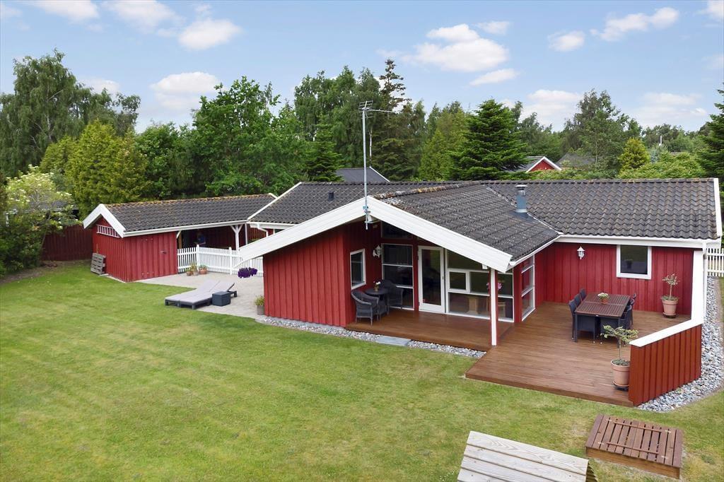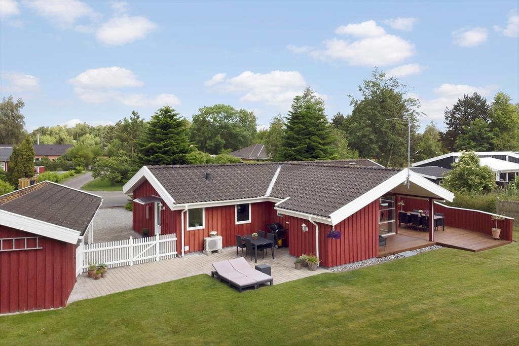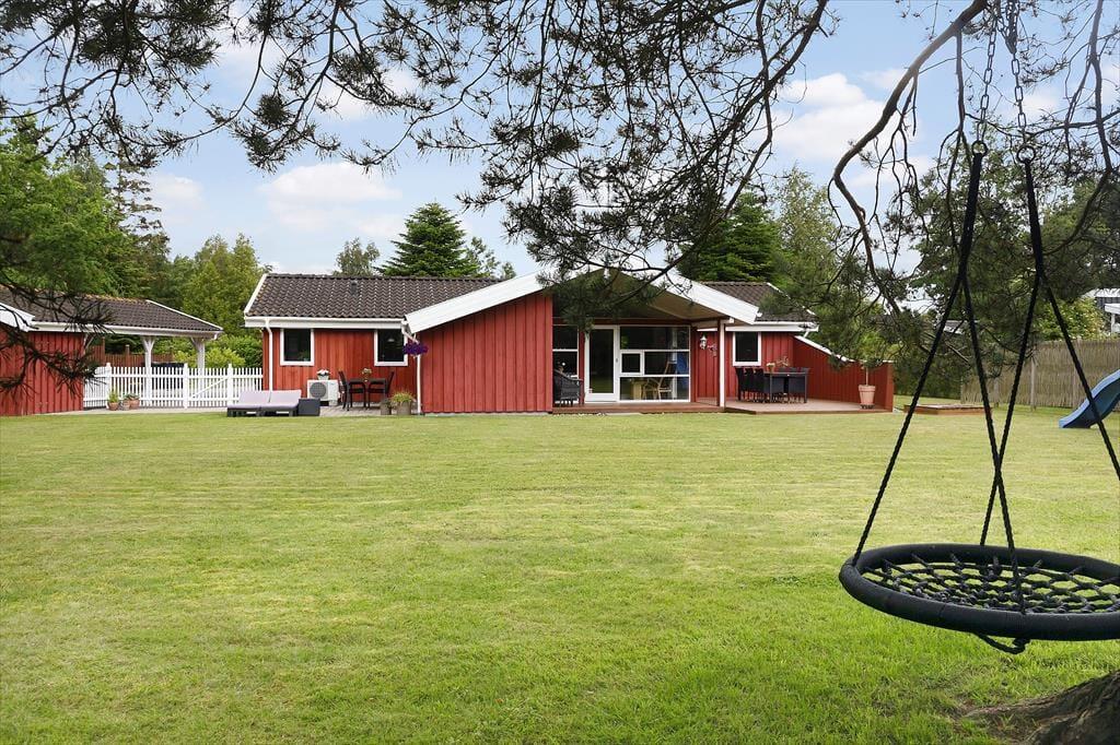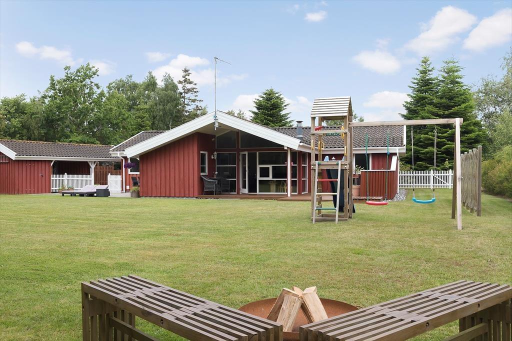Sommerhuset ligger på en 1405 m2 stor grund og kun 850 meter fra vandet. Til huset er en stor skøn terrasse som er delvist overdækket. Derudover har huset en dejlig stor have som byder på en masse sjov og leg, sammen med familie og venner. Bilen kan parkeres ved huset.