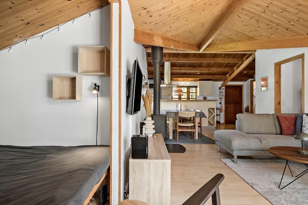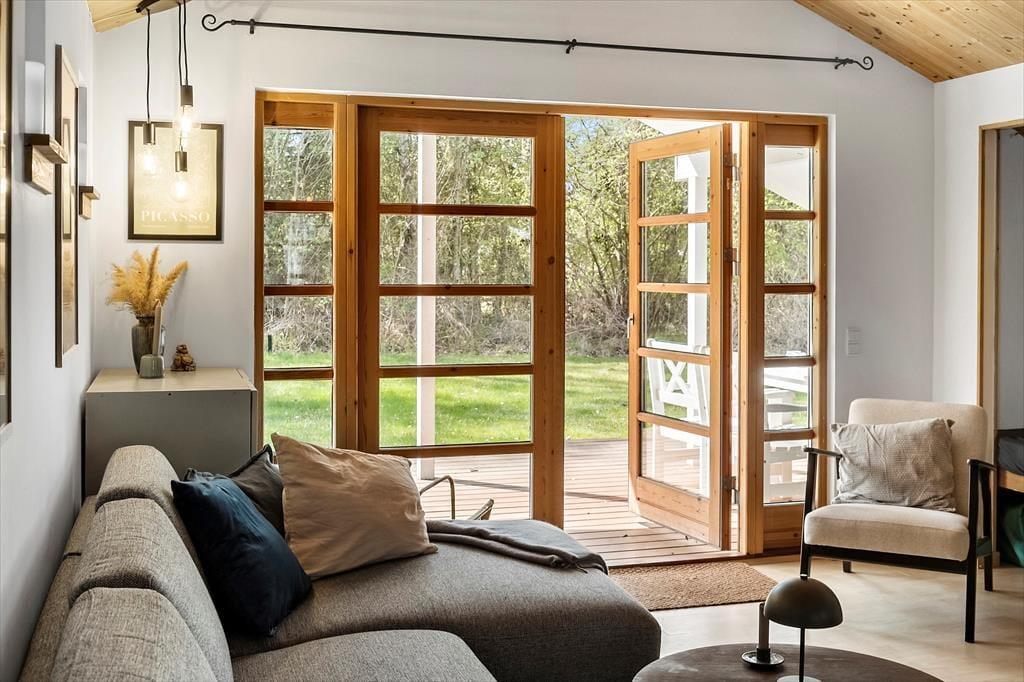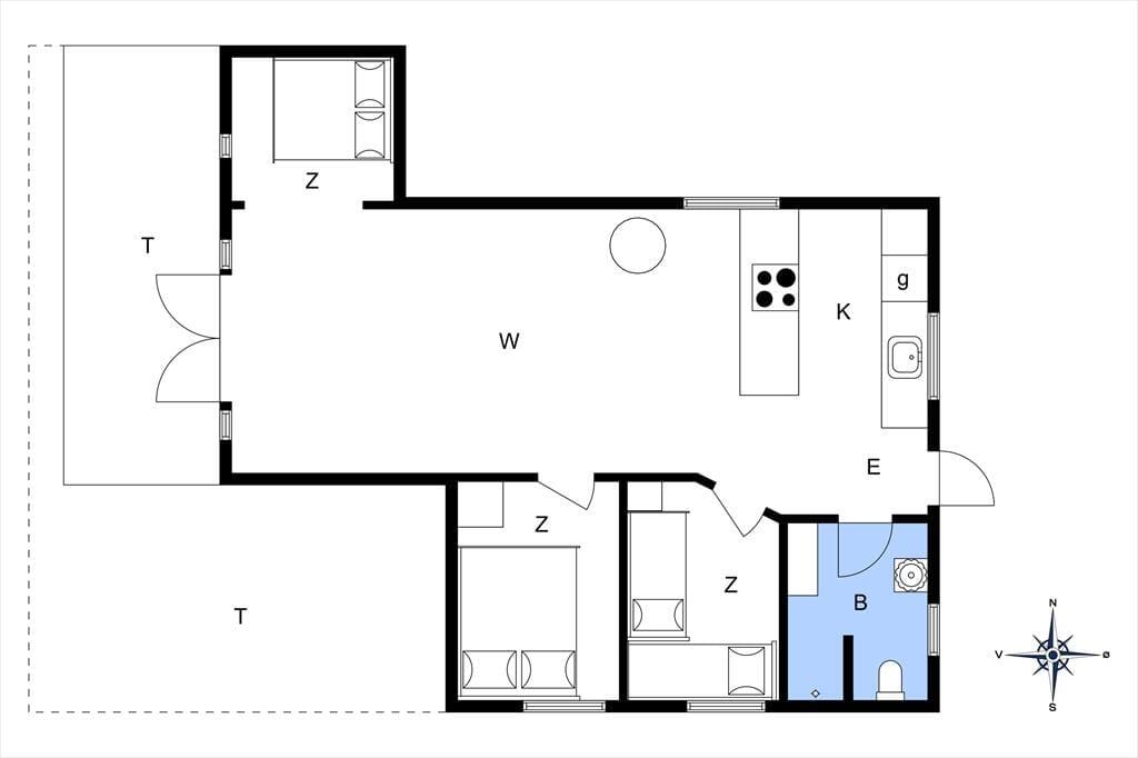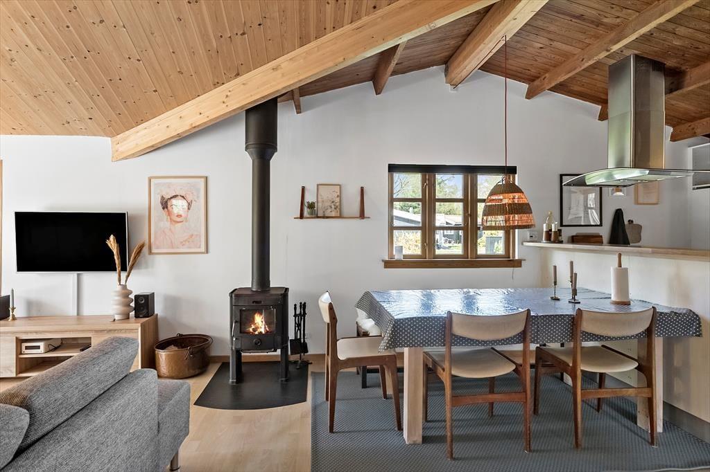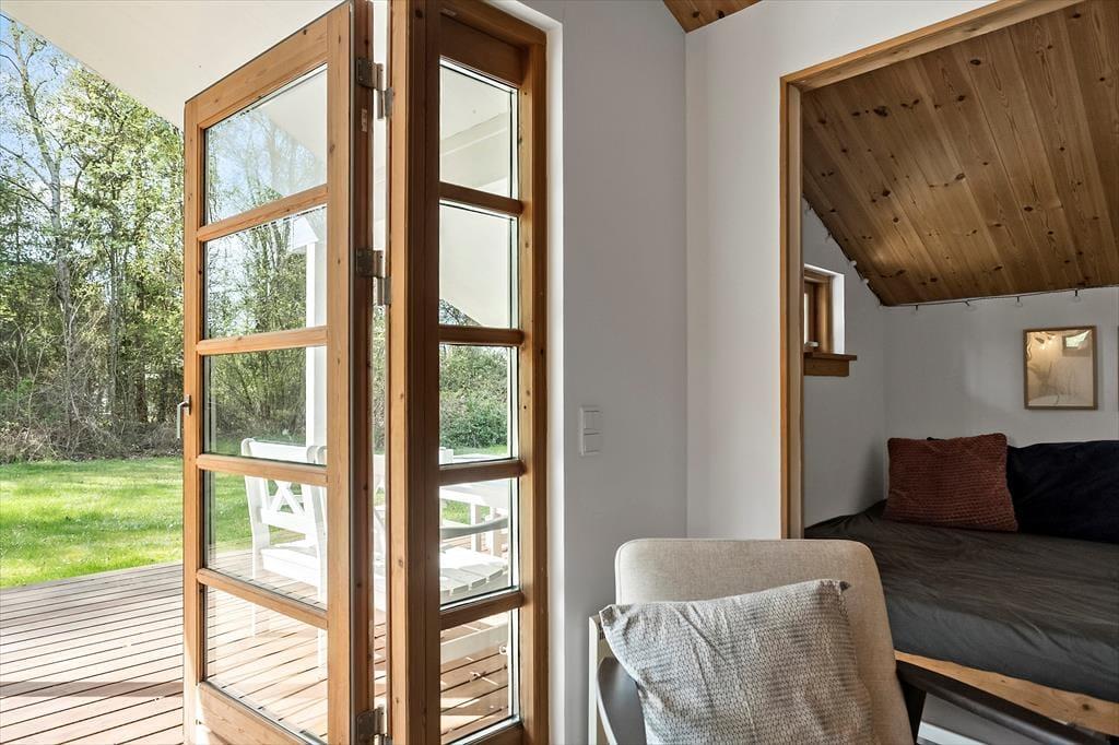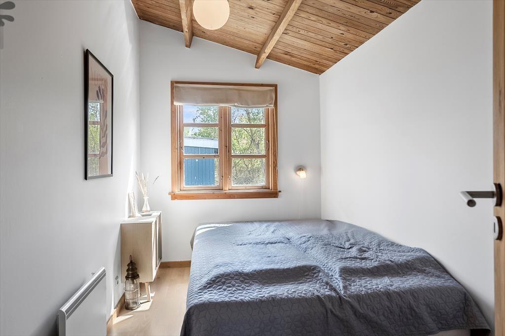 Dette hyggelige sommerhus indeholder: en entre, to gode soveværelser med dobbeltseng i det ene soveværelse og 2 enkeltmandssenge i det andet soveværelse. Der er 2 ekstra sovepladser i stuen, hvor der er en hyggelig alkove med en dobbeltseng. Derudover er der et badeværelse med wc, bruser og håndvask. Til sidst er der det skønne åbne køkken, med udgang til spiseområde og sofaområde. Fra stuen er der udgang til husets skønne delvist overdækket terrasse.