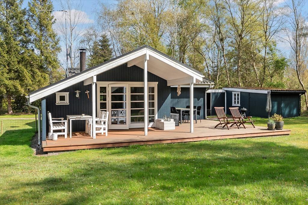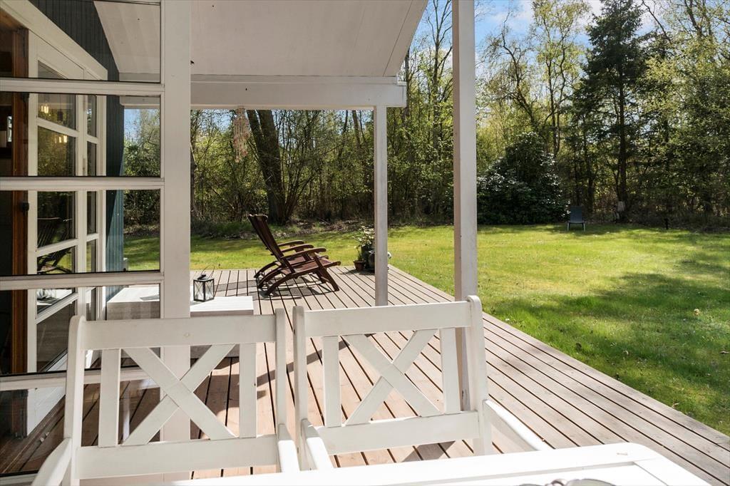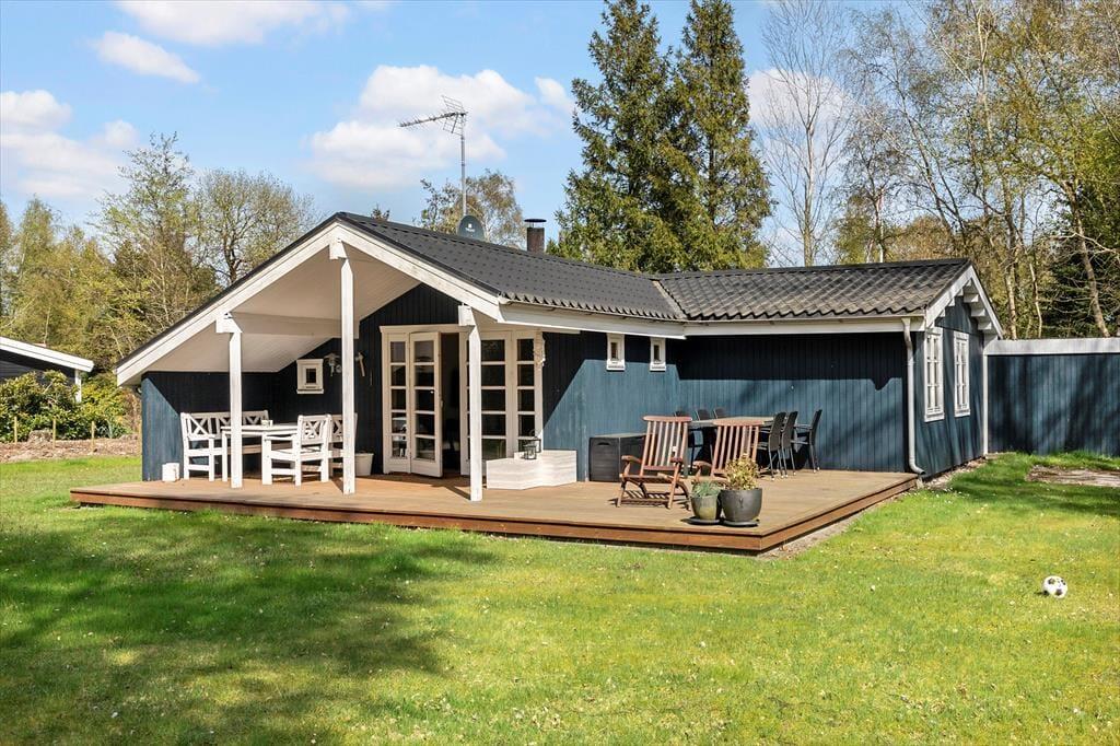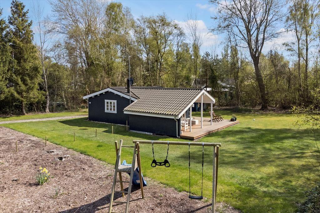 Sommerhuset er beliggende på en 1800 m² stor havegrund. Til sommerhuset er en skøn delvist overdækket terrasse med havemøbler og grill. Derudover er der en stor græsplæne, hvor der er plads til en masse sjov og leg. Der er parkeringsplads ved sommerhuset.