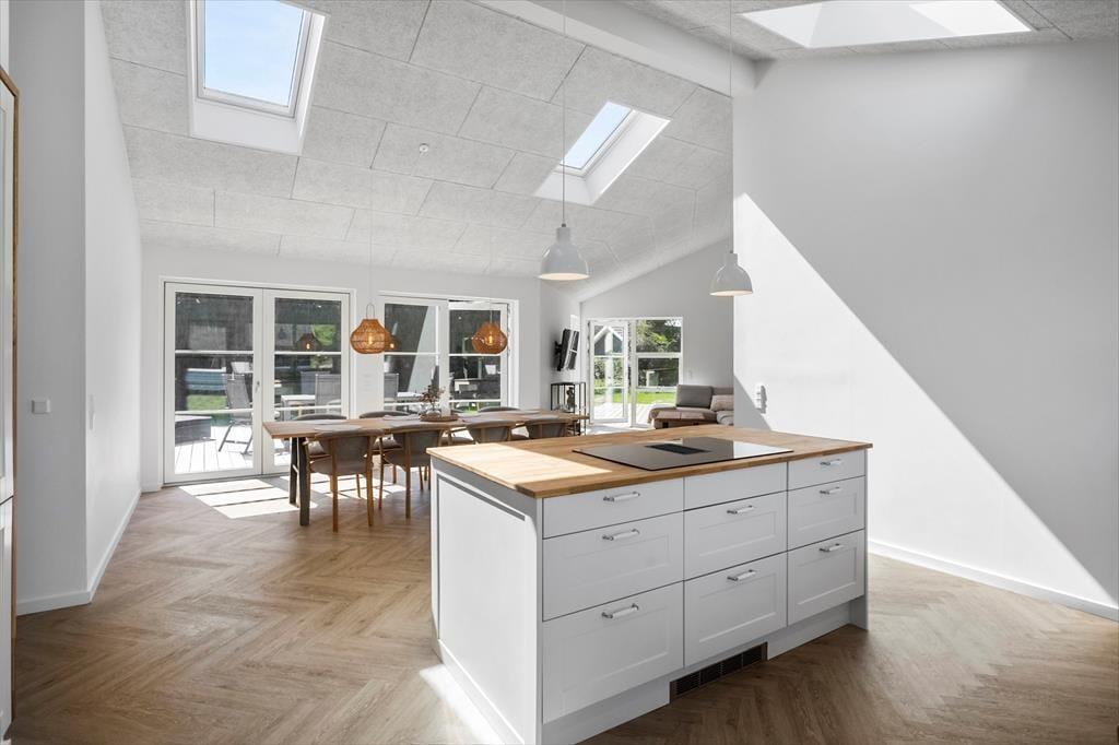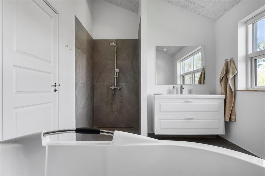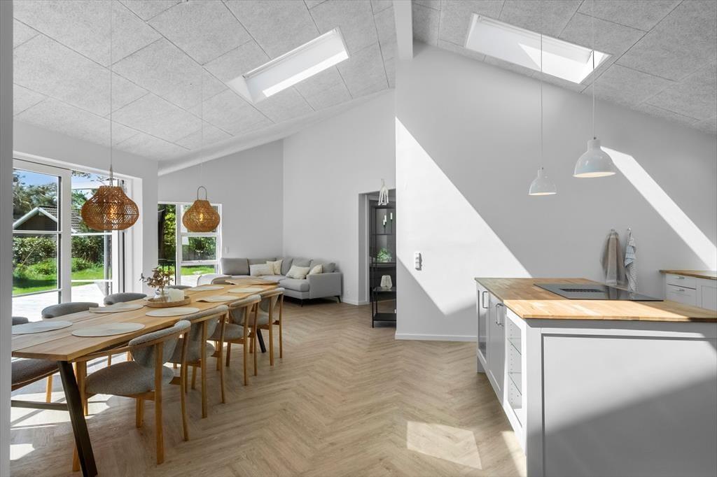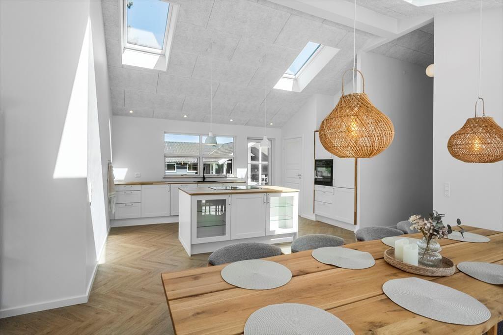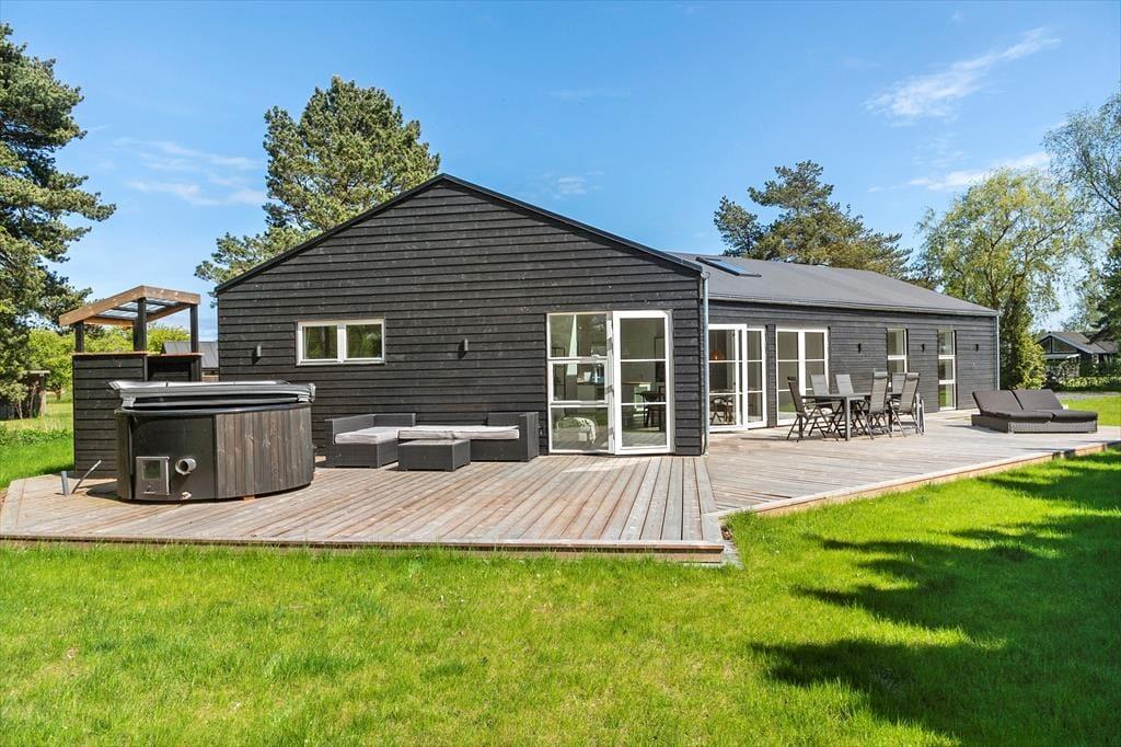 Sommerhuset egner sig til 8 personer. Sommerhuset er 142 m² og er bygget i 2024. Sommerhuset byder på et bryggers med vaskemaskine og tørretumbler, 4 gode soveværelser med dobbeltseng i 3 af soveværelserne og 2 enkeltmandssenge i det sidste soveværelse. Derudover er der 2 badeværelser, det ene med wc og bruser, det andet med wc, bruser og indendørs spabad. Til sidst har sommerhuset det skønneste køkken-alrum, med spiseafdeling og sofaområde. Fra køkkenet er der udgang til husets skønne terrasse.