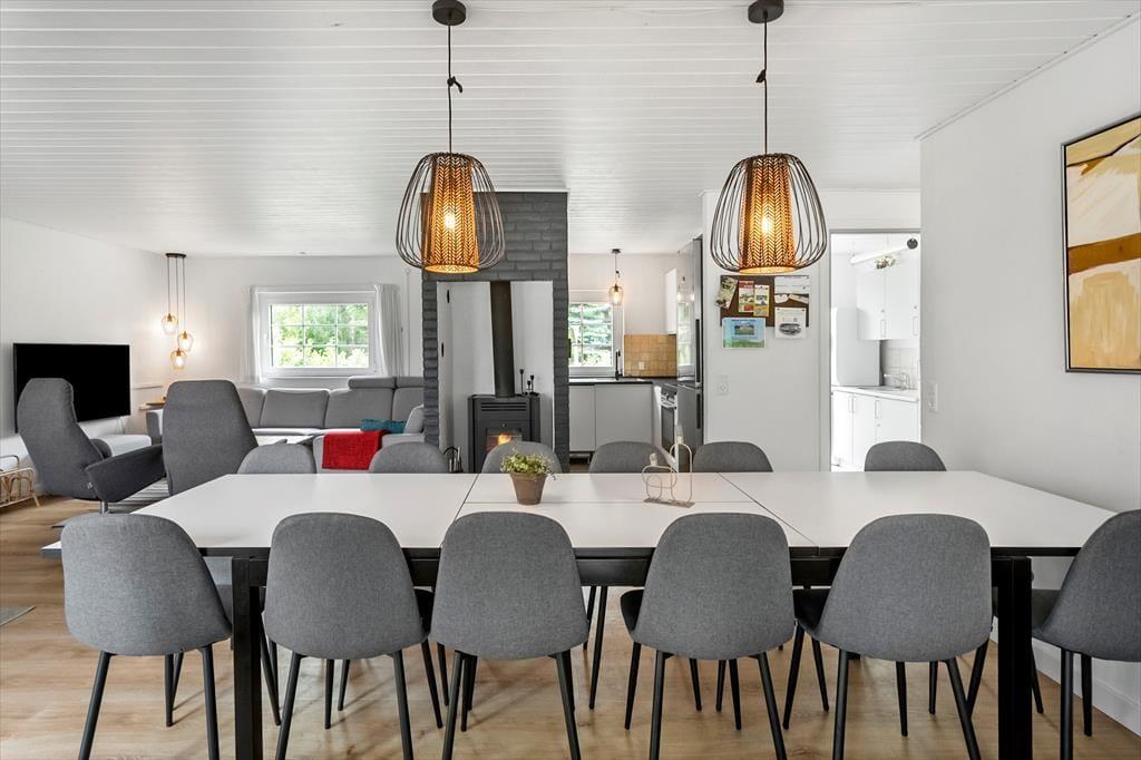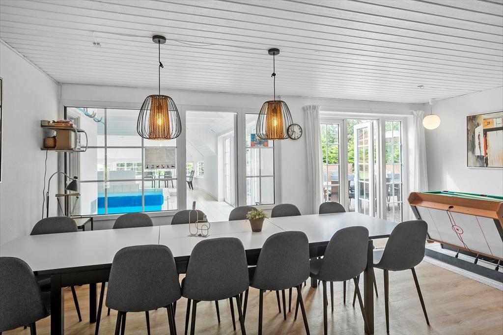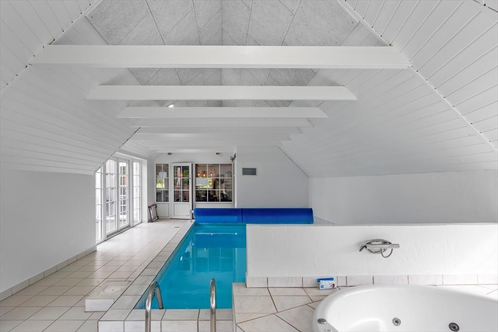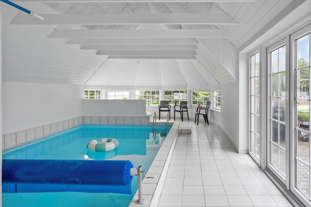 Sommerhuset byder på 6 gode soveværelser, 3 badeværelser, 1 bryggers, og et åbent køkken i forbindelse med opholdsstuen. Fra stuen er der indgang til husets dejlige swimmingpool samt udgang til terrassen og haven.