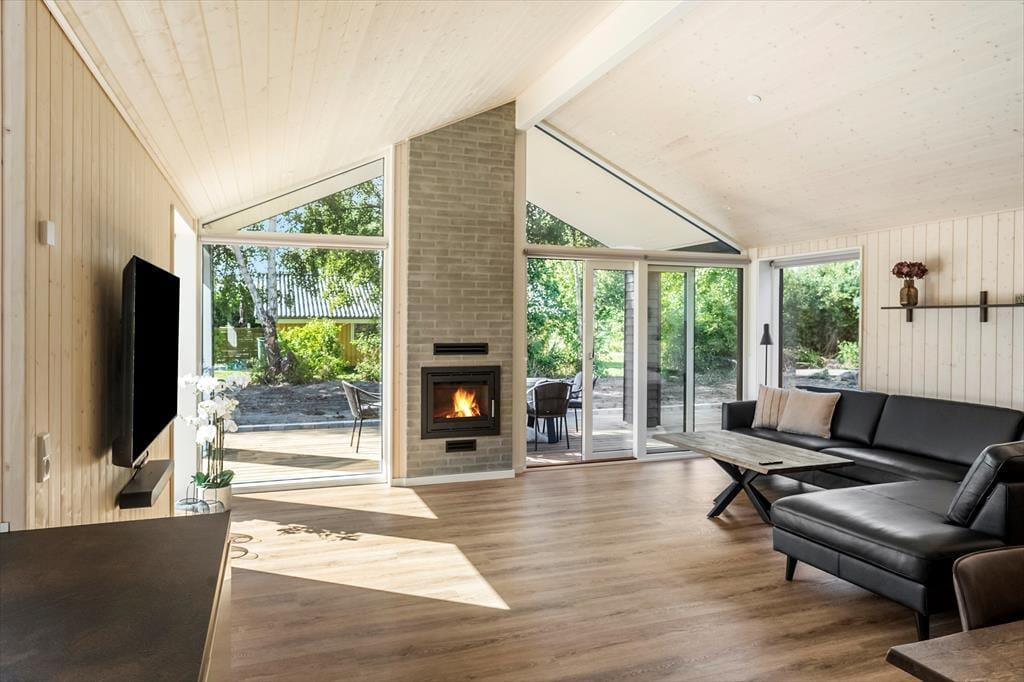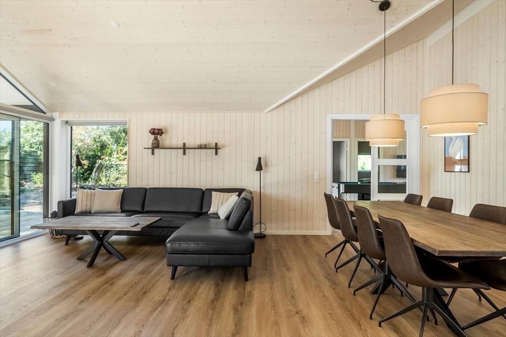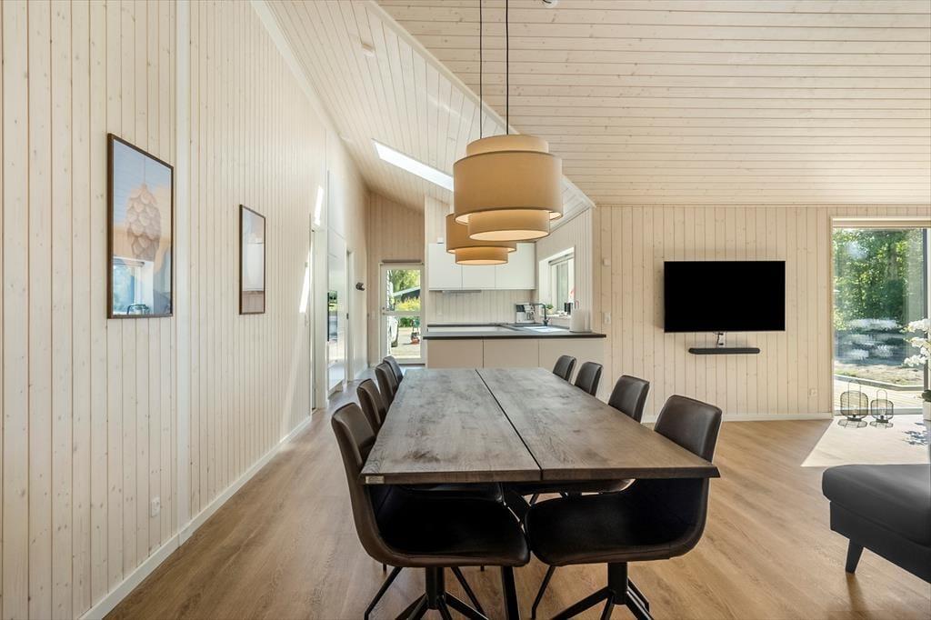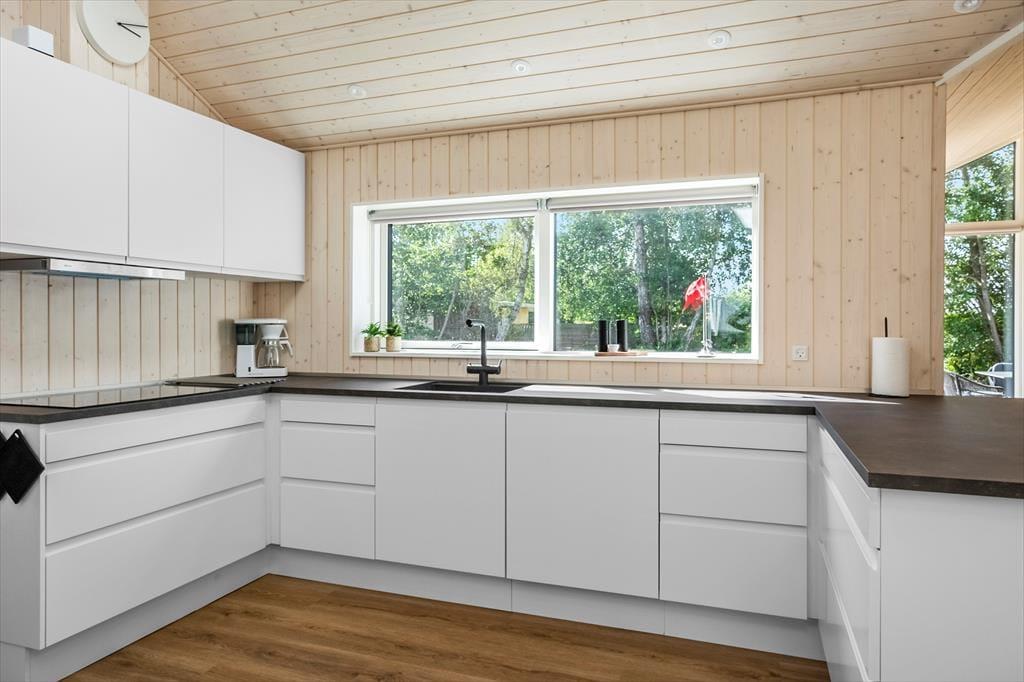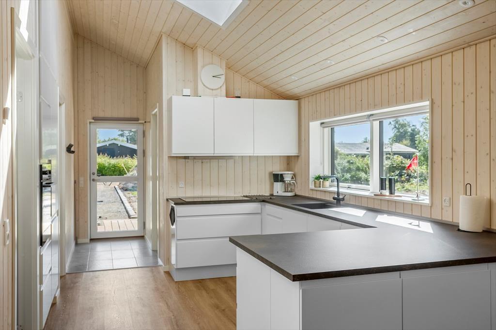 Husets naturlige samlingspunkt er det lyse og åbne køkken-alrum, hvor store vinduespartier skaber et fantastisk lysindfald. Herfra er der adgang til både spiseafdeling og opholdsstue samt direkte udgang til den skønne delvist overdækket terrasse. I køkkenet er der vandhane med kogende vand.