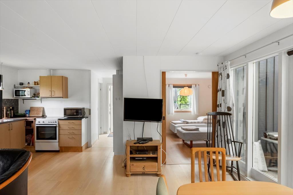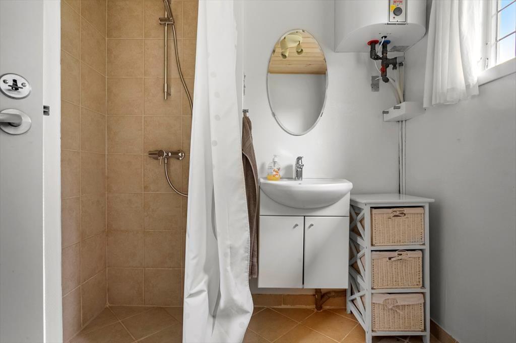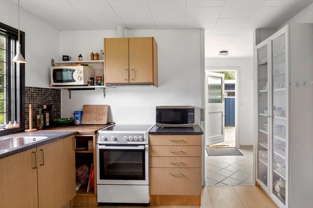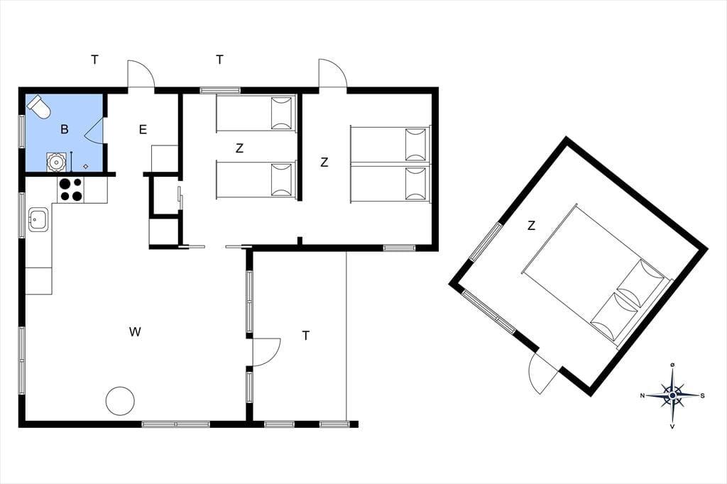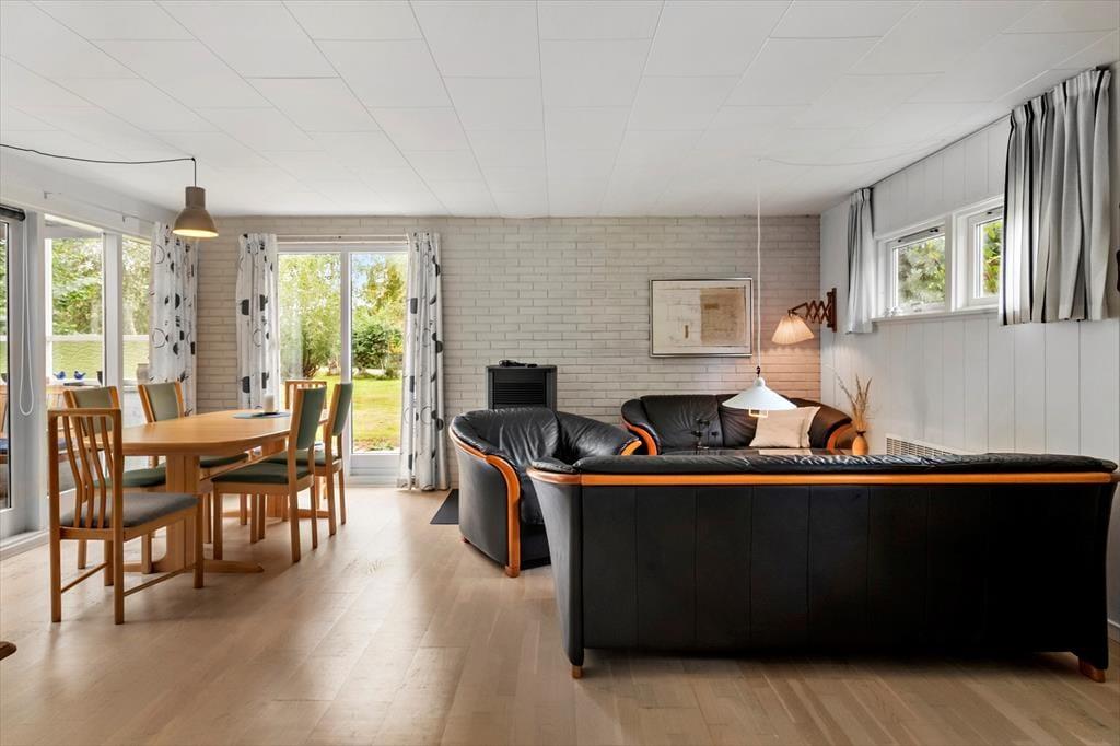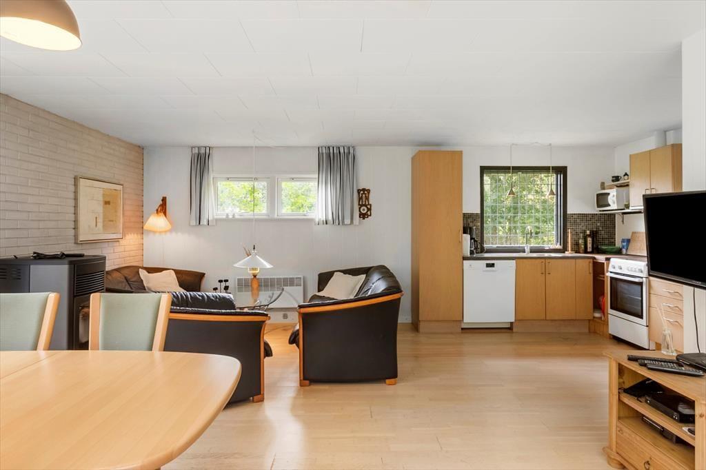 Sommerhuset byder på en entre, med indgang til husets åbne køkken. Her er der spise område og sofaområde. Herfra er der udgang til husets skønne terrasse. Derudover byder huset på 2 soveværelser med 2 enkeltmandssenge i det ene og 1 dobbeltseng i det andet. Til sidst byder sommerhuset på et badeværelse med wc, bruser og håndvask.