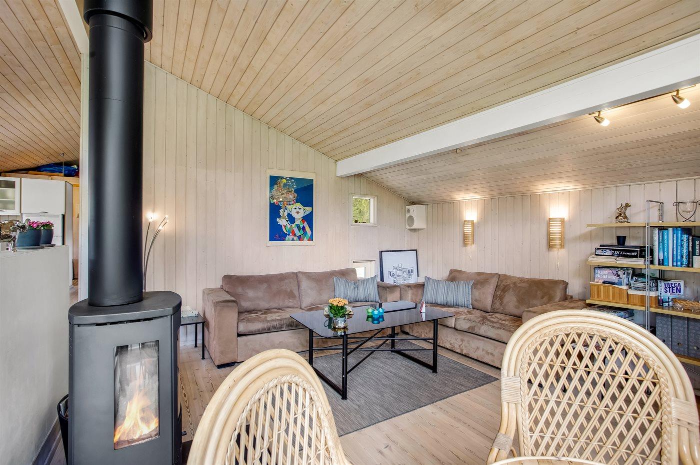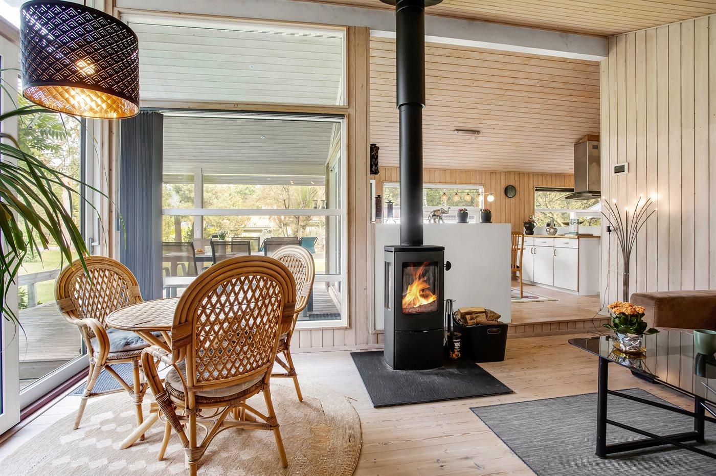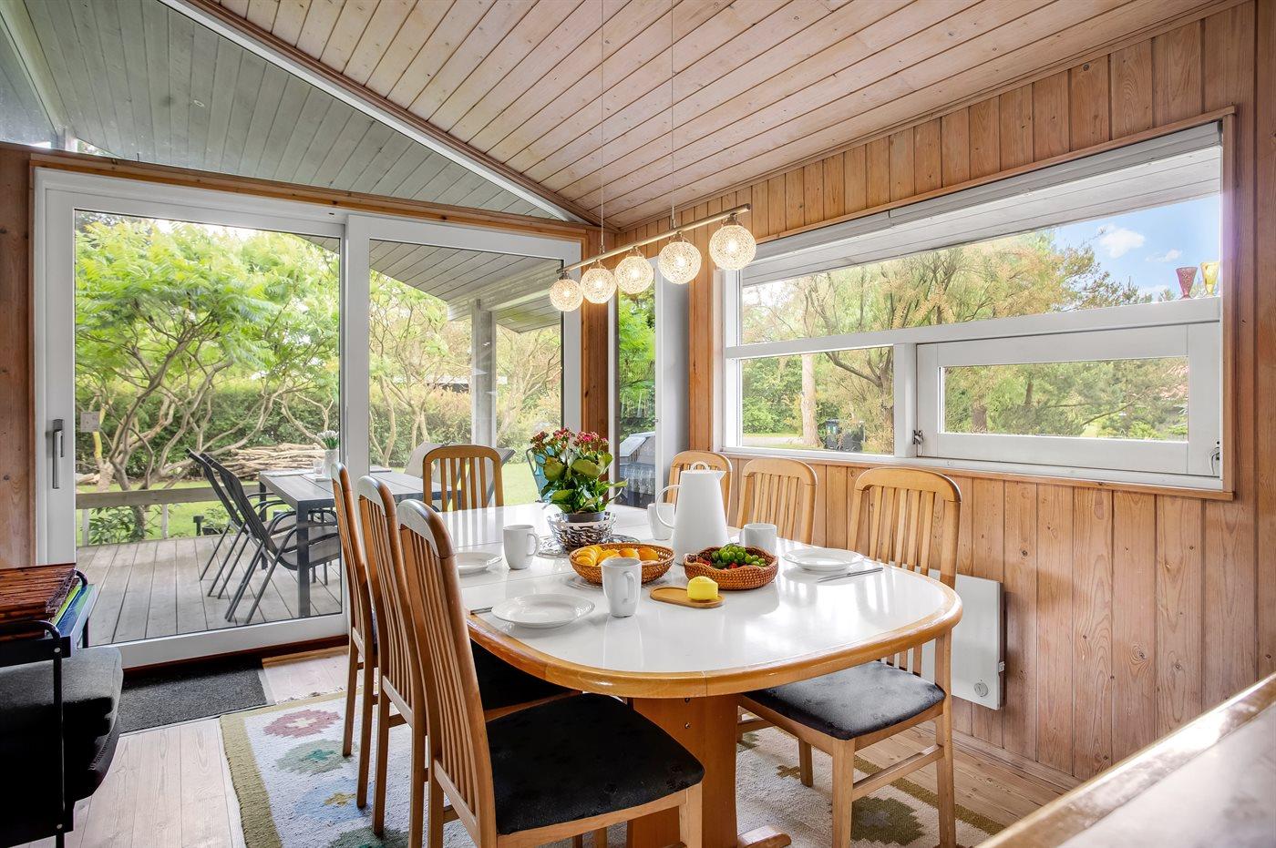 Skønt sommerhus beliggende på en dejlig lukket grund nær god børnevenlig badestrand. Huset er velindrettet og fremstår lyst.