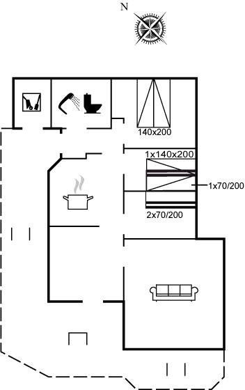 Der er i alt 3 soveværelser. Sovepladserne fordeler sig på: 4 sovepladser i dobbeltsenge. 3 sovepladser i køjesenge.