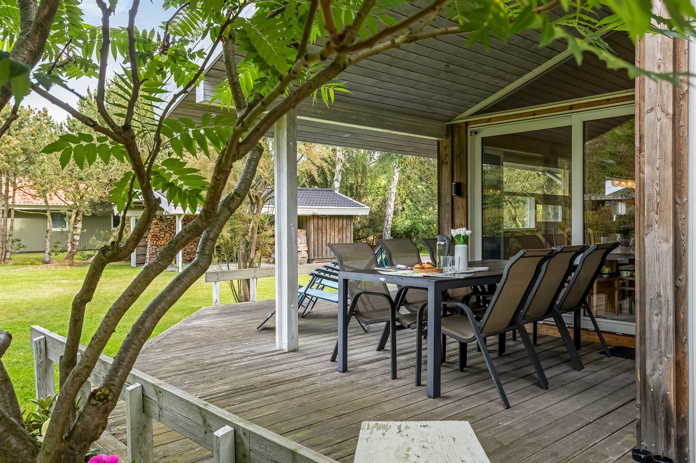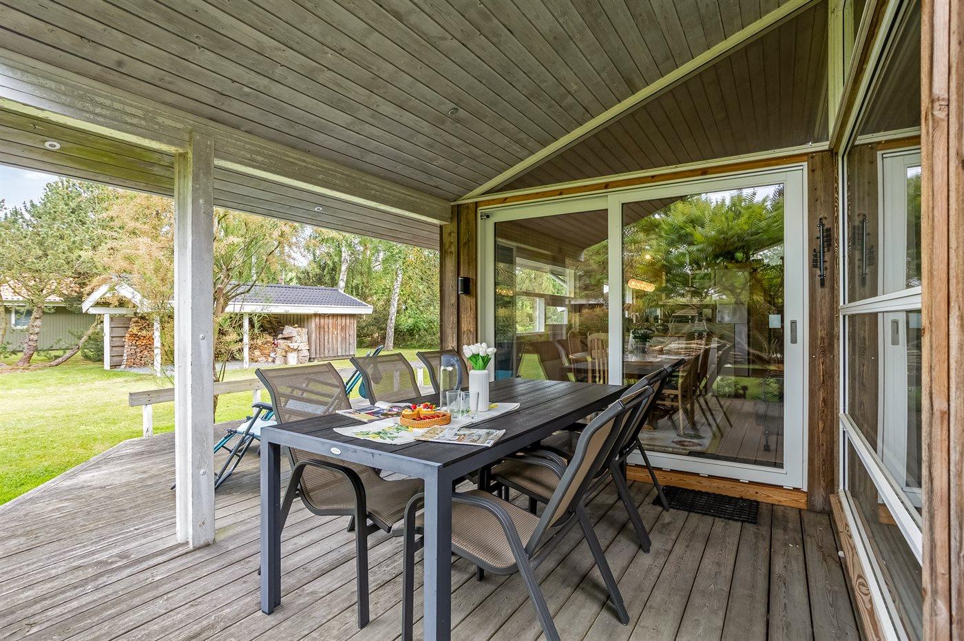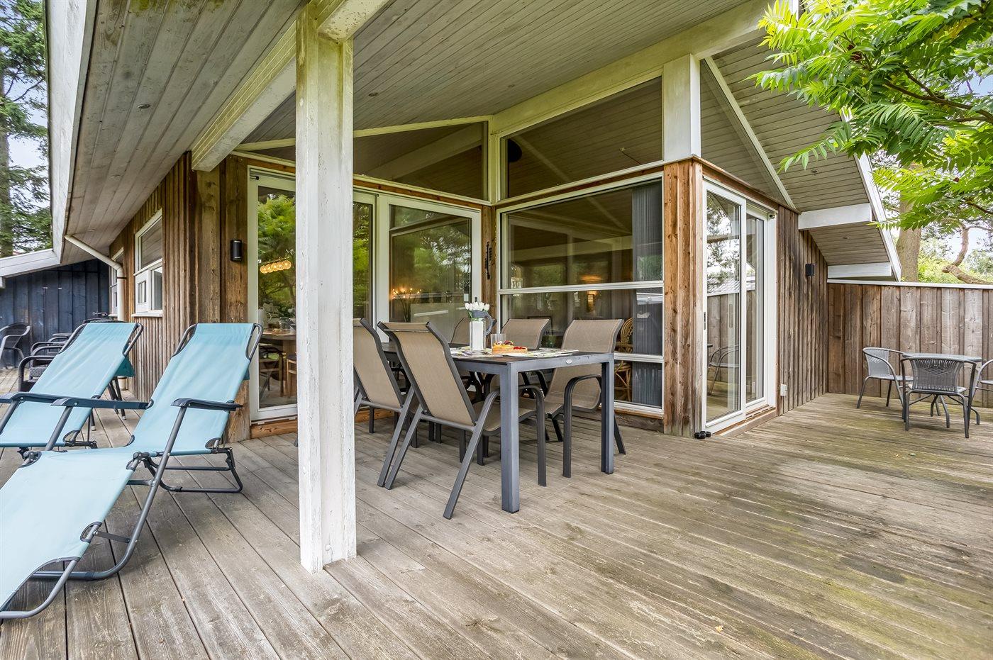 Ferieboligen er beliggende på en 950 m² stor havegrund. Der er 1000 m til havet. Nærmeste forretning er beliggende i en afstand af 800 m. Til ferieboligen hører 43 m² terrasseareal. Desuden er der 12 m² overdækket terrasse. Der er redskabsrum. Sandkasse. Der er carport til rådighed.