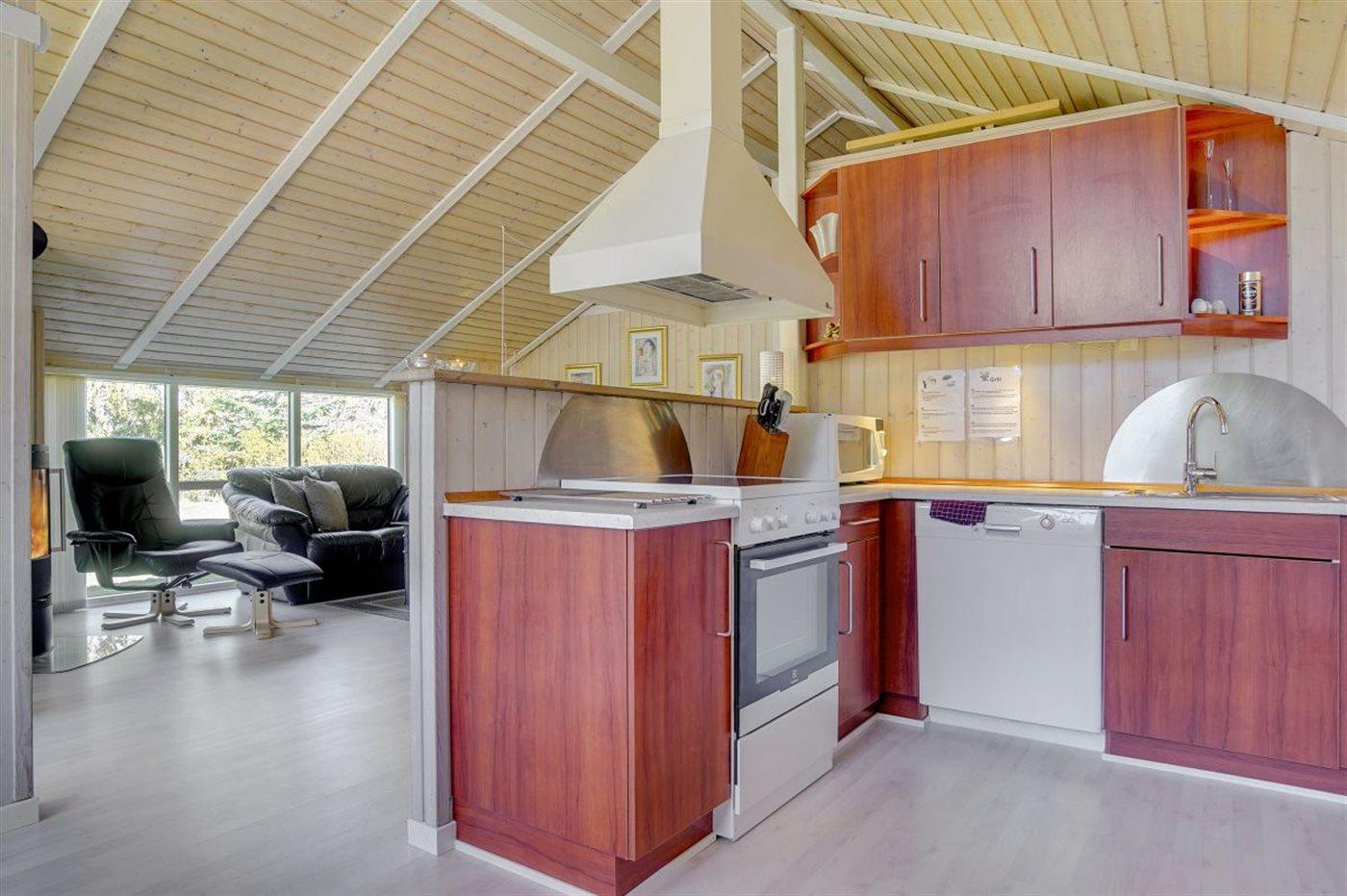 Køkkenet er udstyret med 1 køleskab. Der er 4 keramiske kogeplader, varmluftovn, mikrobølgeovn samt opvaskemaskine.