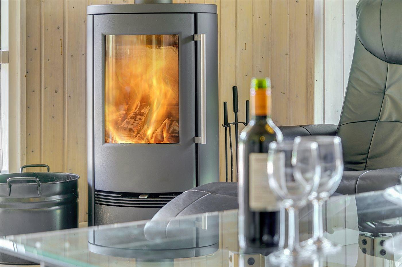 Hyggeligt sommerhus nær børnevenlig sandstrand med sauna, brændeovn og moderne faciliteter.